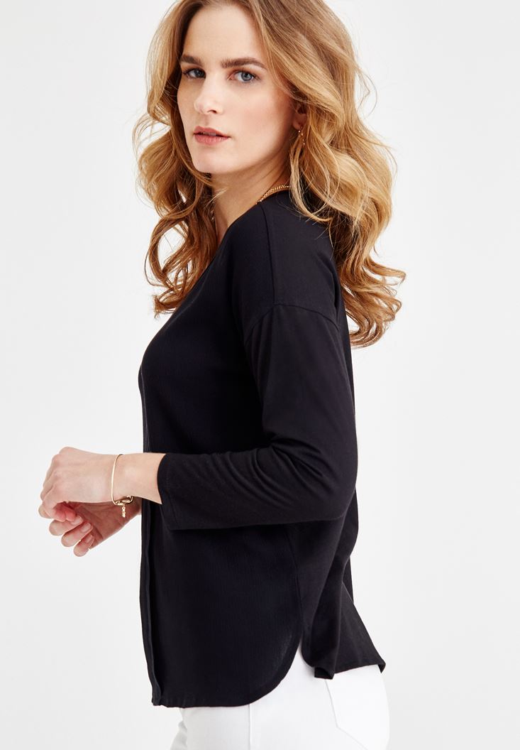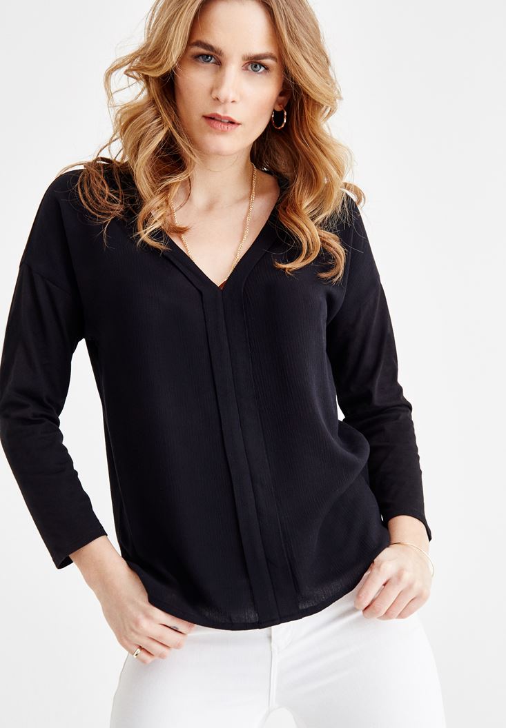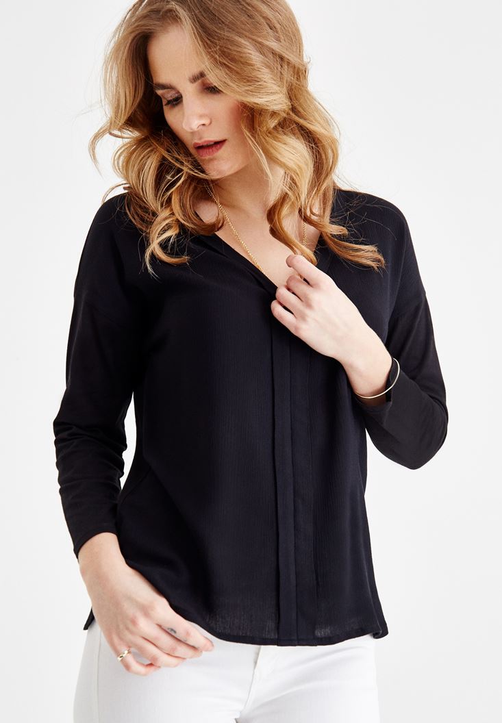 V Yaka Detayli Bluz zarafetin kalite ile bulustugu noktada oldukça hos bir siklik sunan bluz modelleri arasinda yer aliyor. V yaka kesimi ve yaka kesimini ön plana çikarirken bluz boyunca devam eden serit biye detayi tasarima hos bir hava katarken ayni zamanda gizli dügmeli bir gömlek görünümü de veriyor. Modal lifinin nem transfer özelligi ile yumusakliginin ön plana çikan tasarim; pamuk lifinin yüksek nem emiciligi sayesinde uzun süreli kullanimlarda konfor ve hareket özgürlügü sagliyor. Farkli tarzlarda kombinler yaparken rahatlikla tercih edebileceginiz parçalar arasinda yer alan tasarimi kombinlerinizde her zaman büyük bir keyif ile kullanacaksiniz. OXXO'nun sadeligi ön plana çikaran tasarimlarindan birisi olan ve aksesuarlar ile farklilastirabileceginiz bluz modeli ile kendinize has bir siklik elde edeceksiniz.