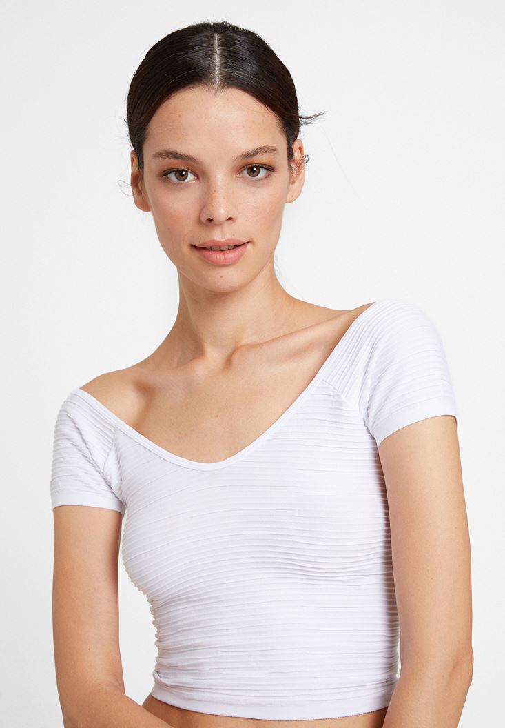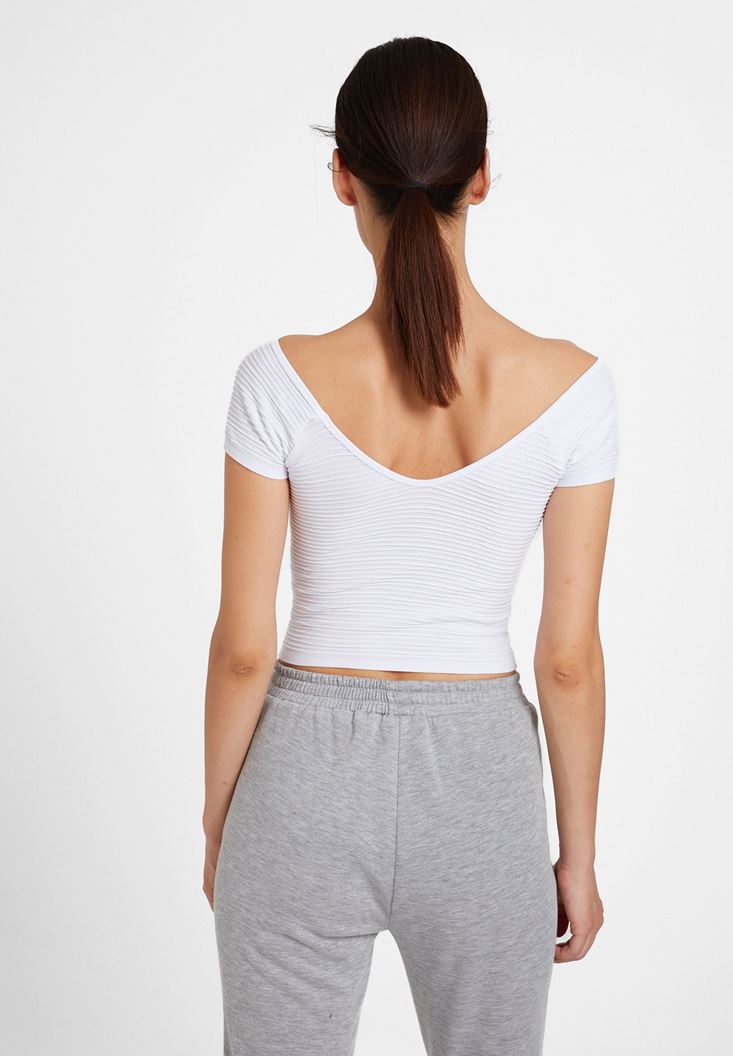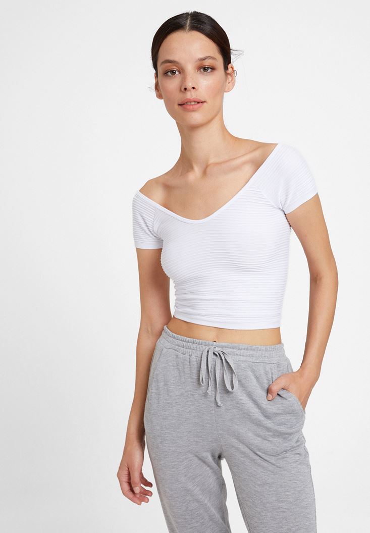 • Bayan Beyaz V Yaka Detaylı Crop Top
