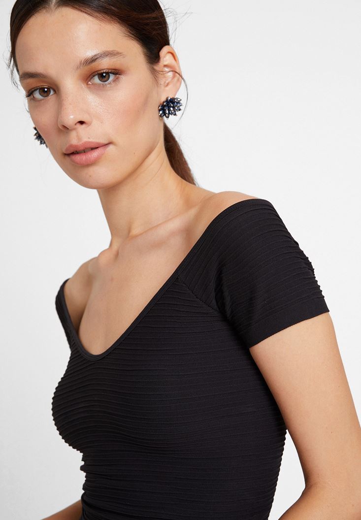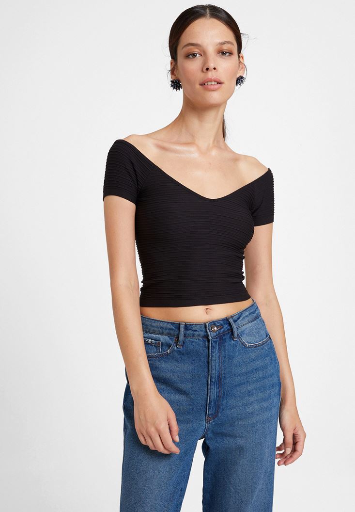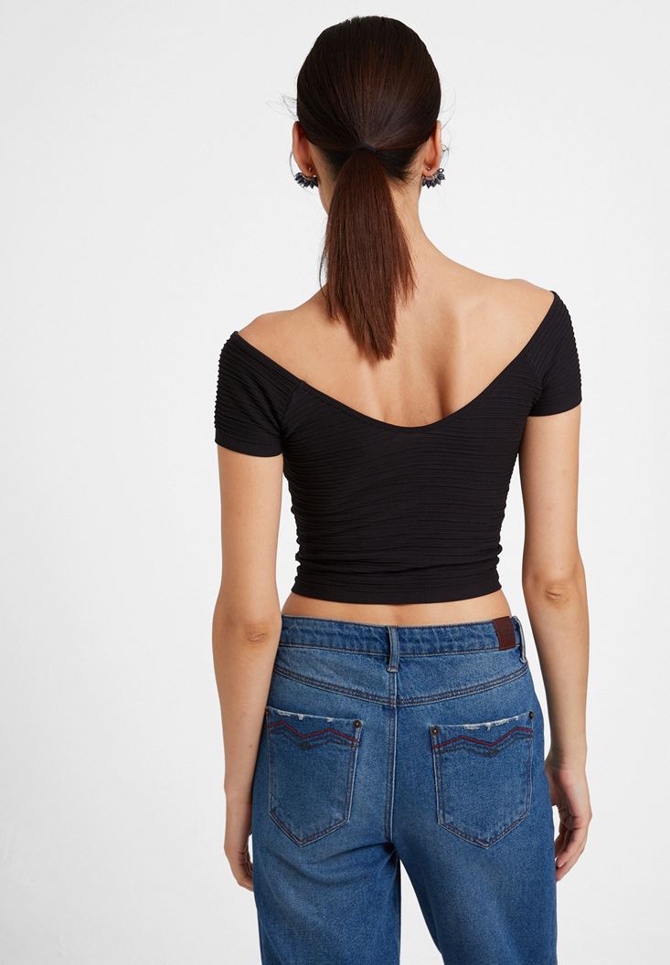 • Bayan Siyah V Yaka Detaylı Crop Top