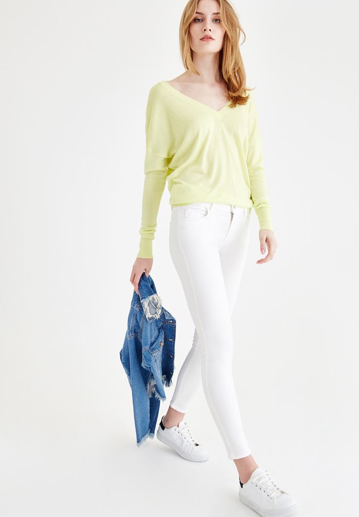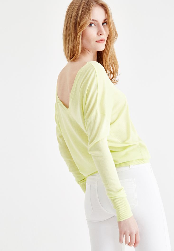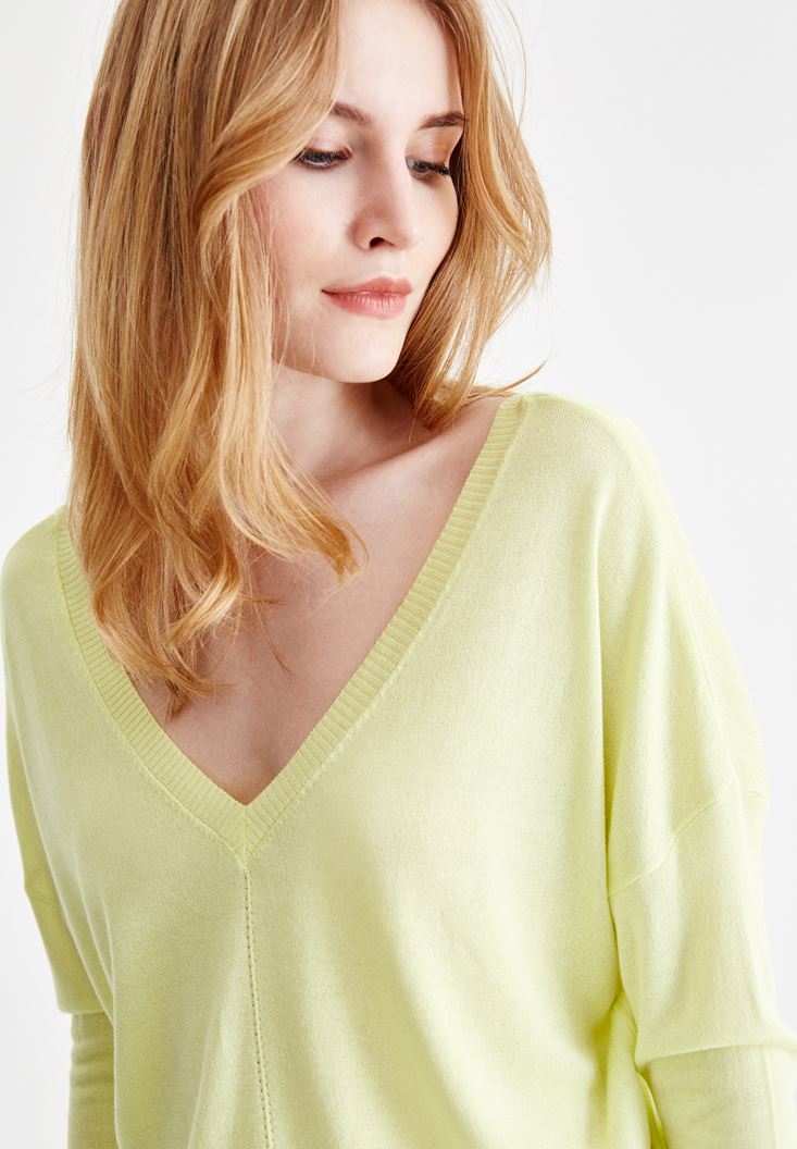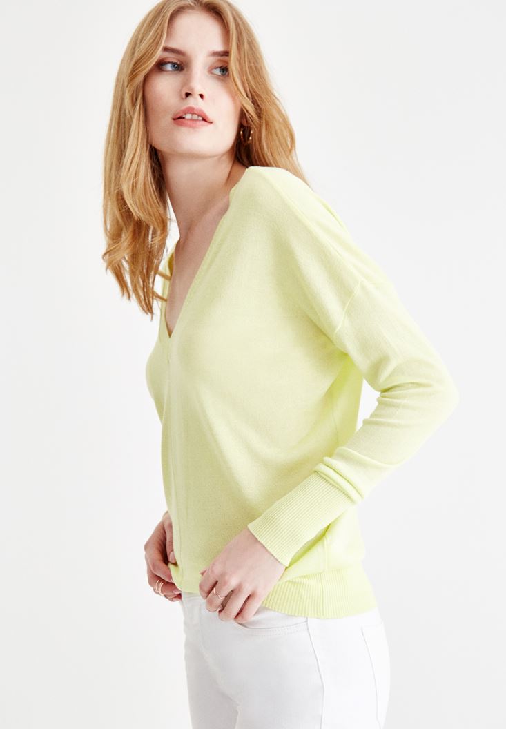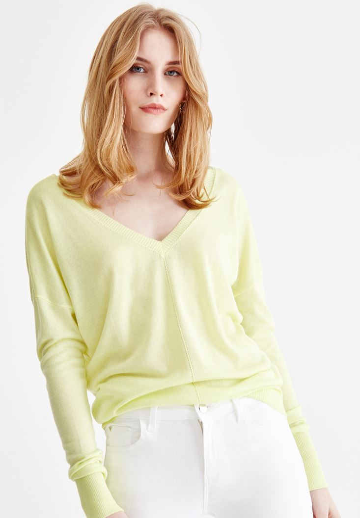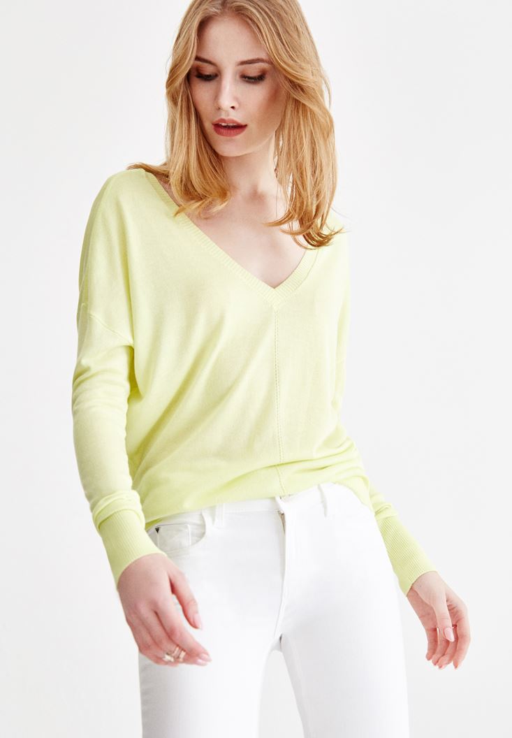 Sarı V Yaka Detaylı Uzun Kollu Triko