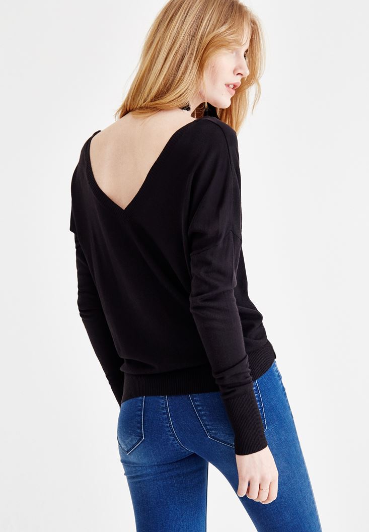 Siyah V Yaka Detaylı Uzun Kollu Triko