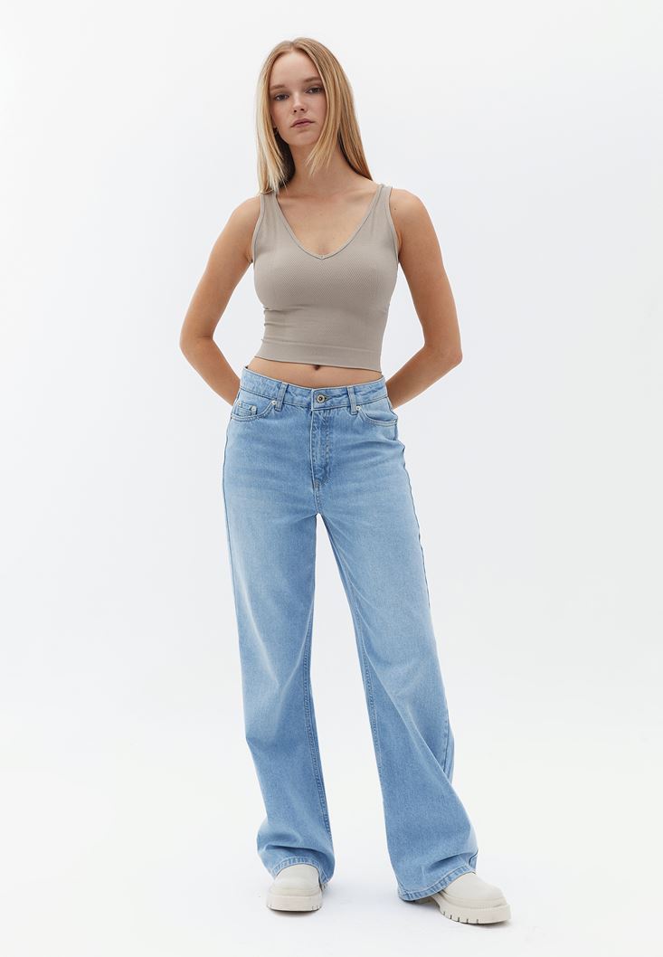 Yüksek Bel Straight-Fit Denim Pantolon