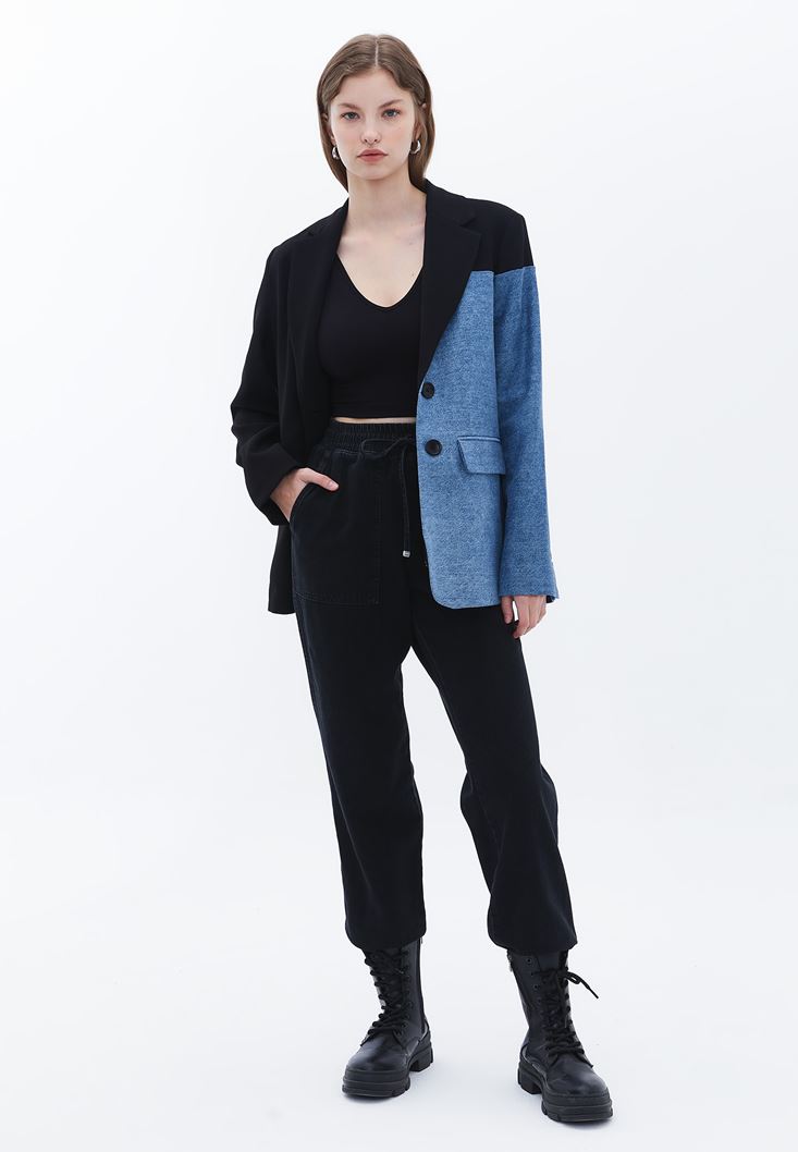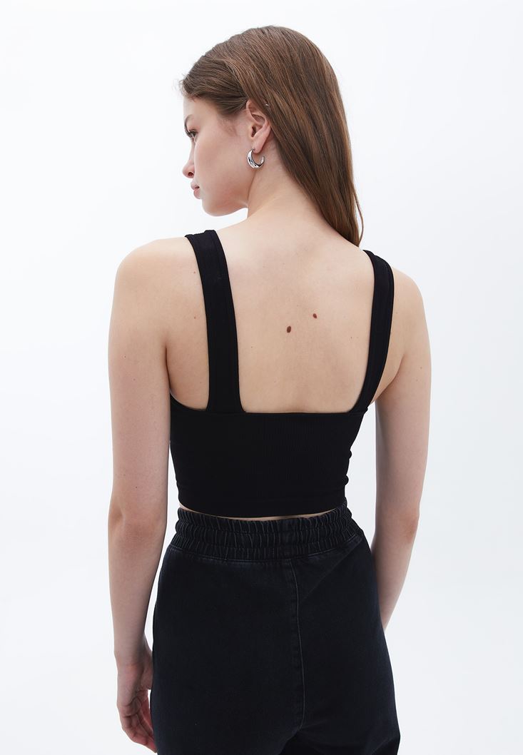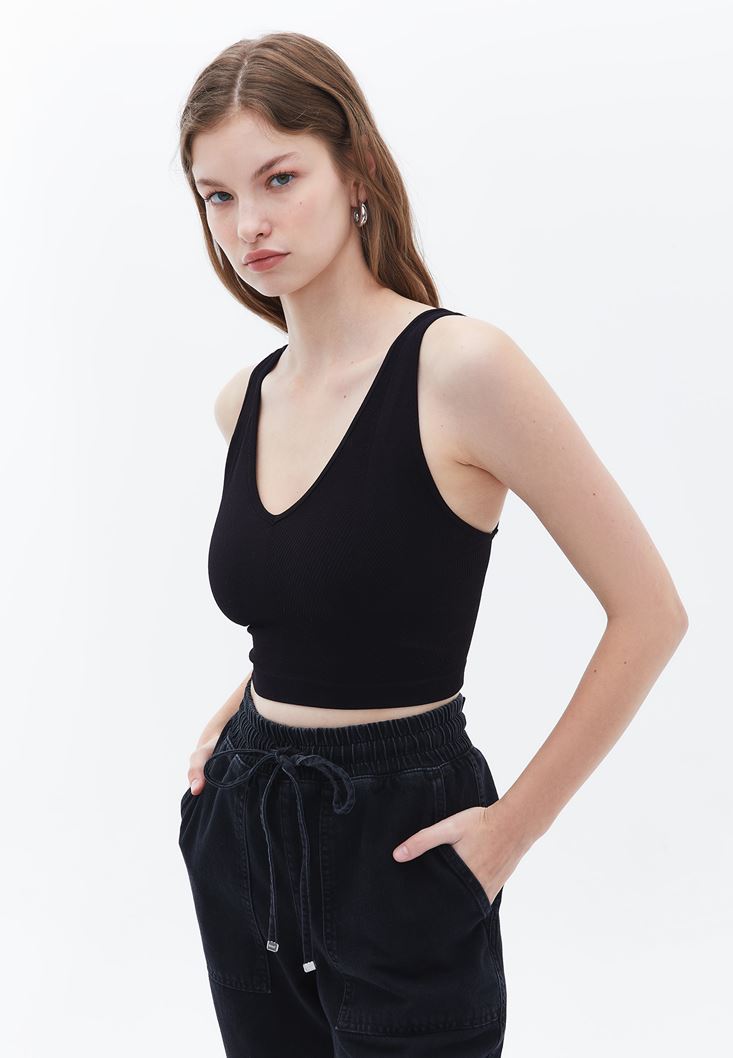 • Bayan Siyah V Yaka Dikişsiz Crop Atlet