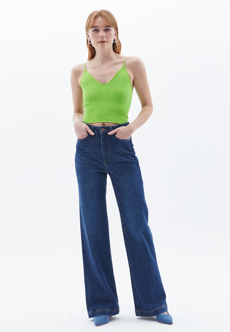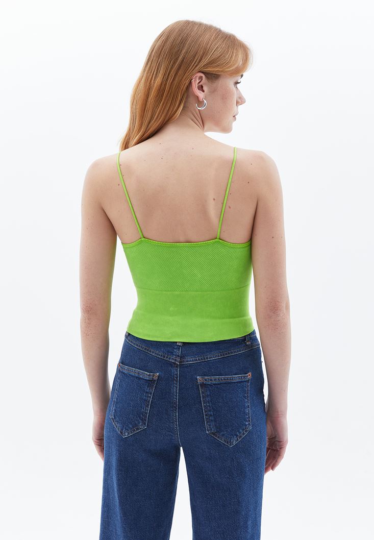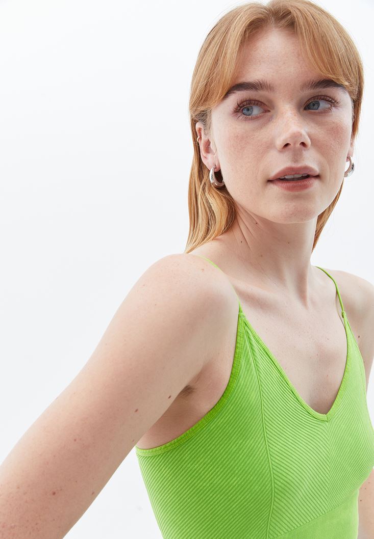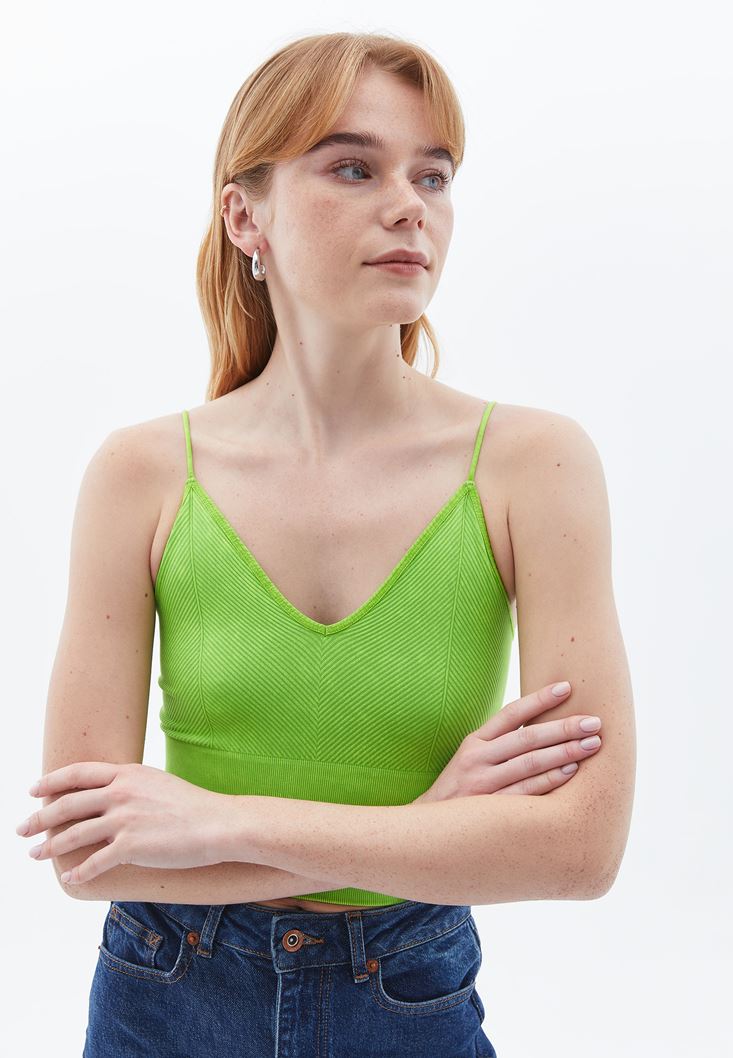Yeşil V Yaka Dikişsiz Crop Atlet