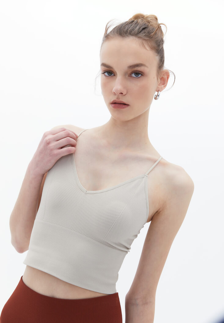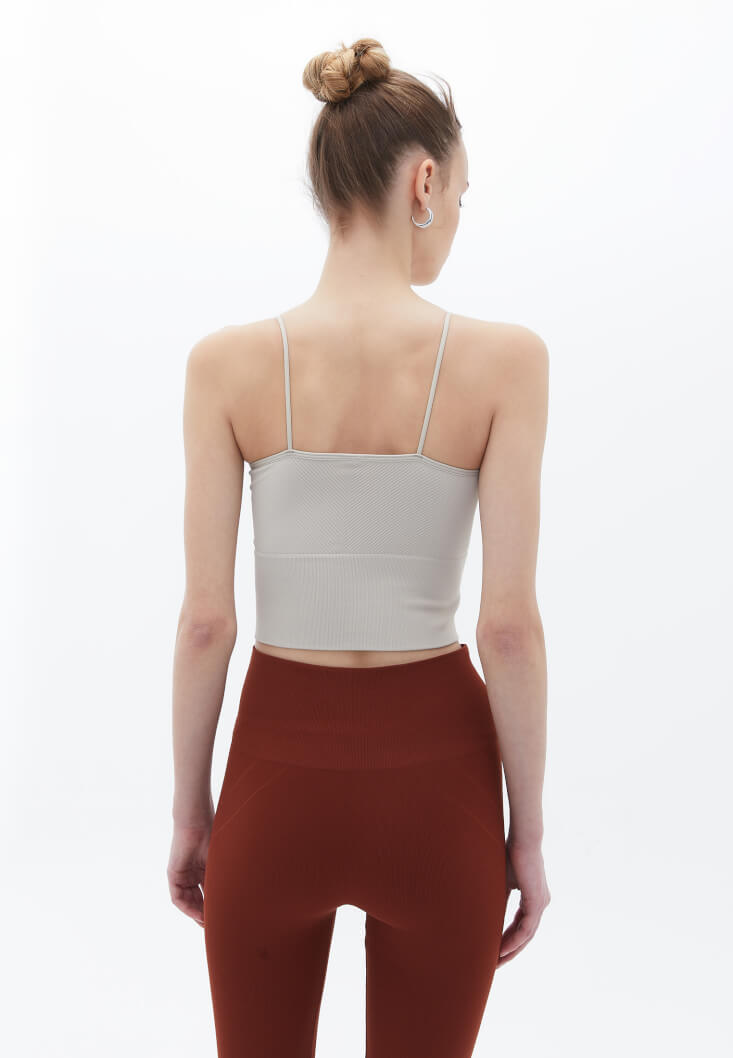 • Bayan Bej V Yaka Dikişsiz Crop Atlet
