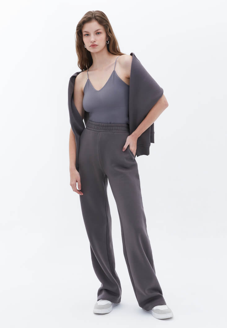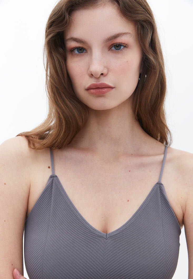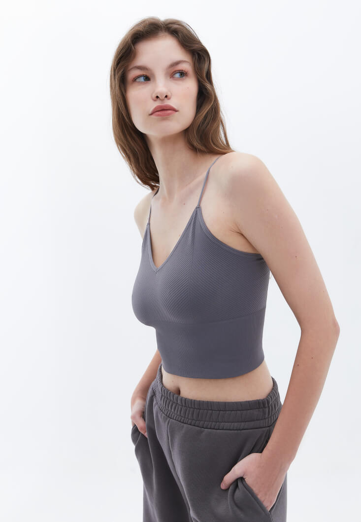 • Bayan Gri V Yaka Dikişsiz Crop Atlet