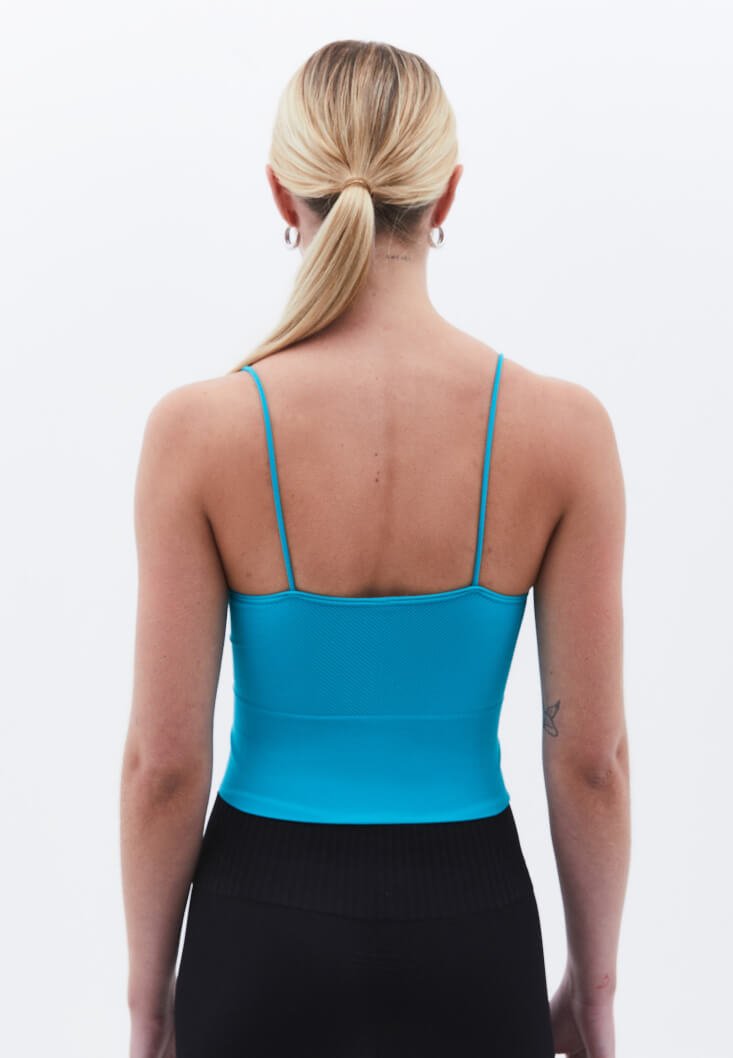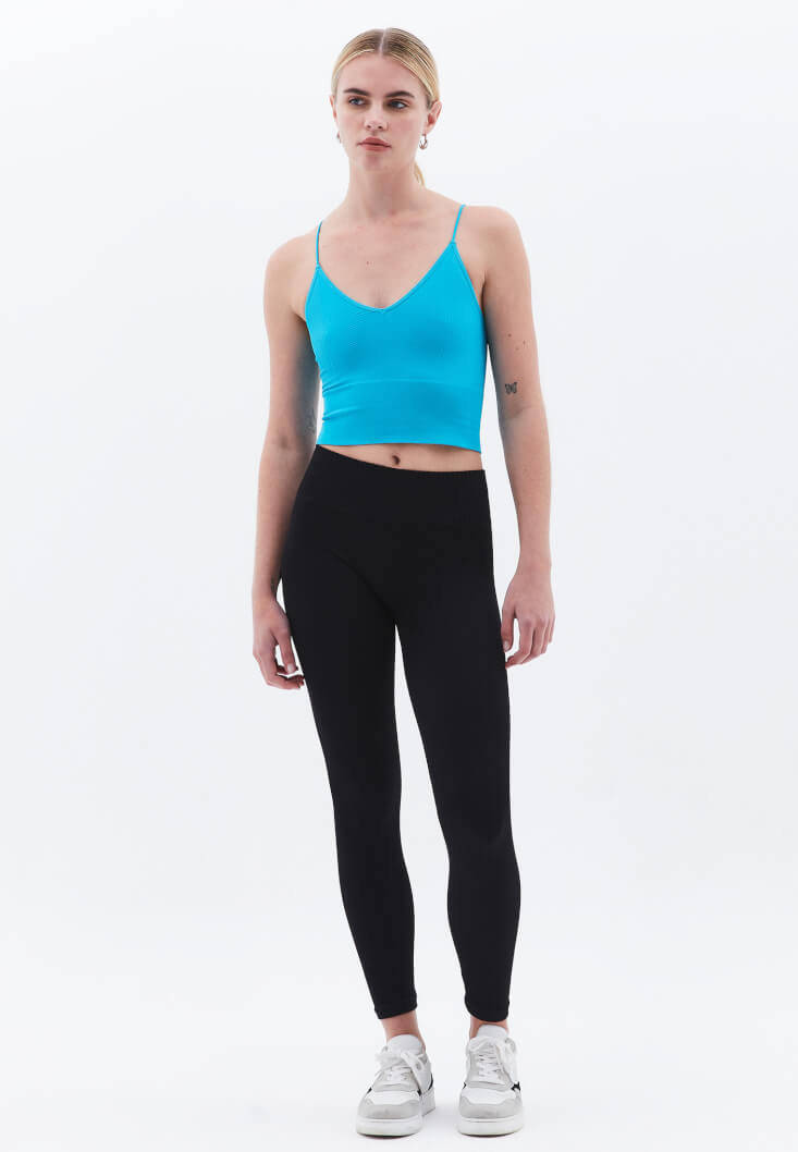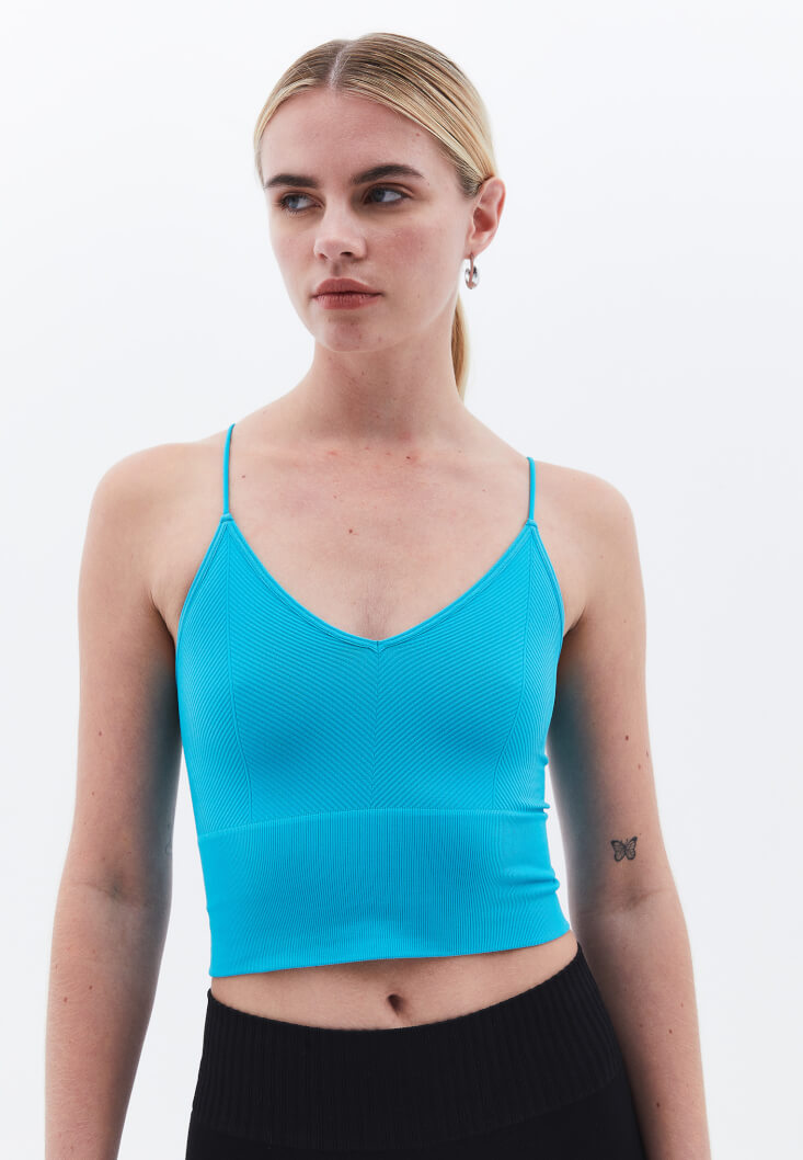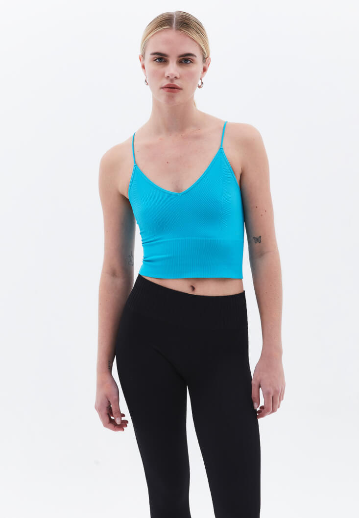 • Bayan Mavi V Yaka Dikişsiz Crop Atlet
