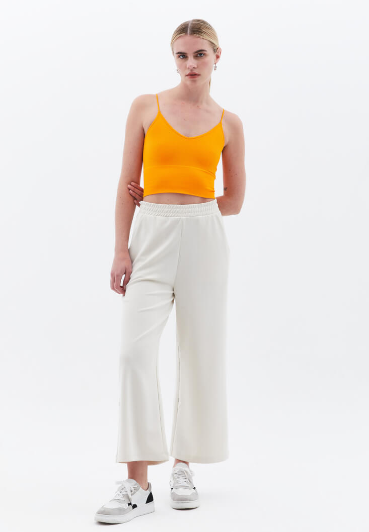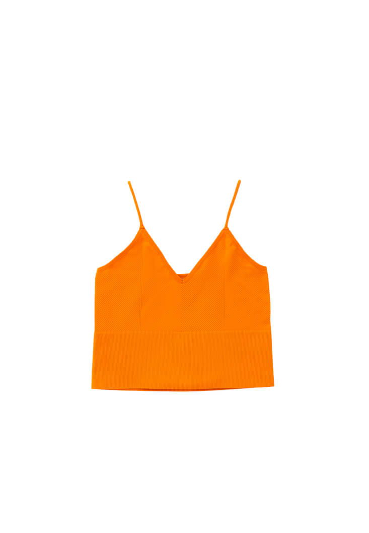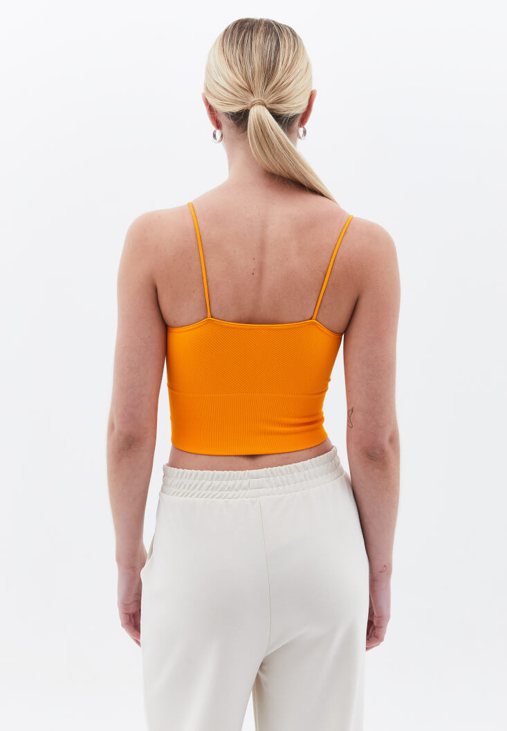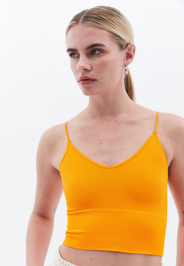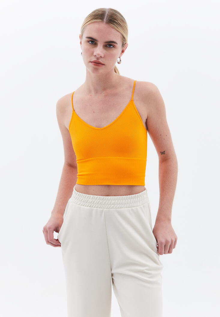 • Bayan Turuncu V Yaka Dikişsiz Crop Atlet