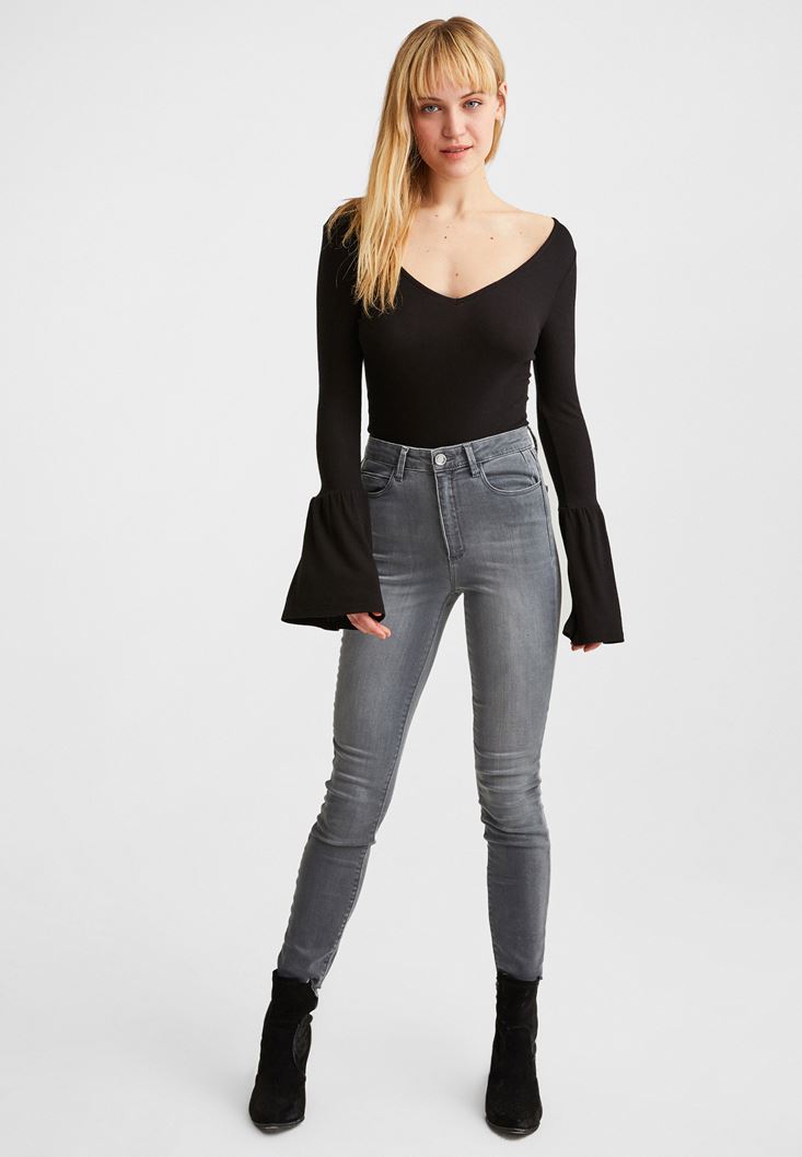 • Bayan Siyah V Yaka Flare Kol Tişört