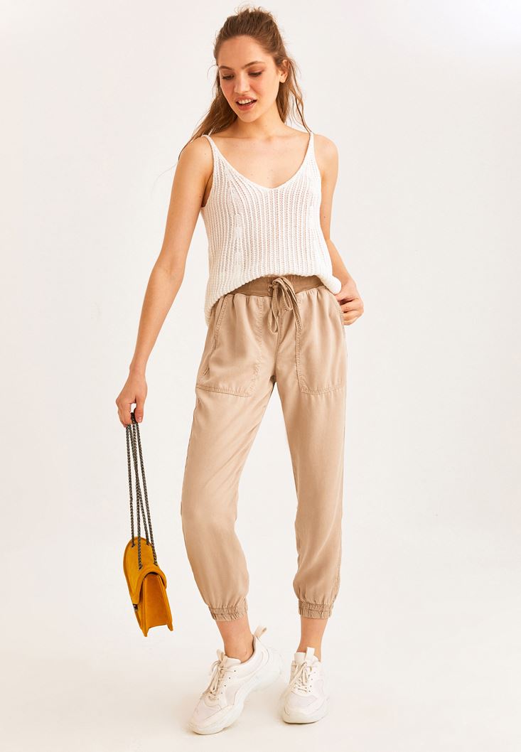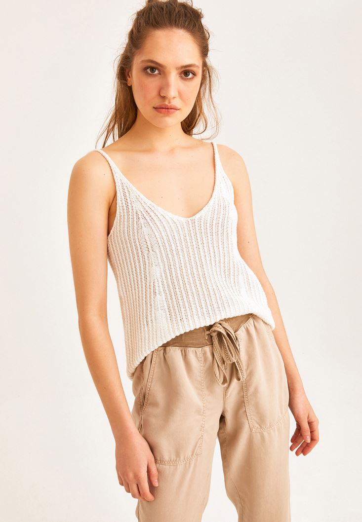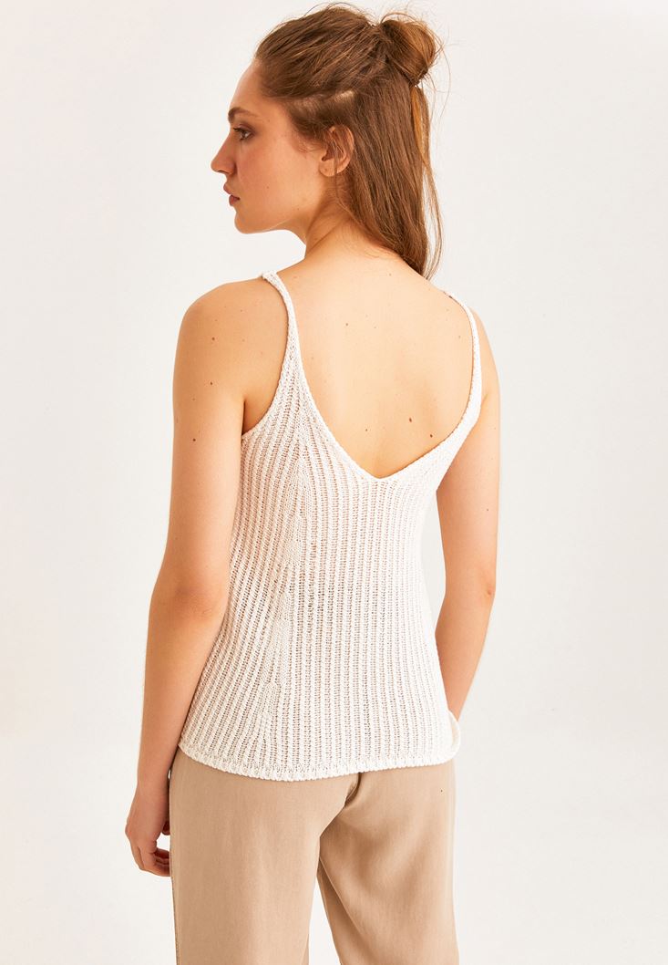 Krem V Yaka İnce Askılı Atlet