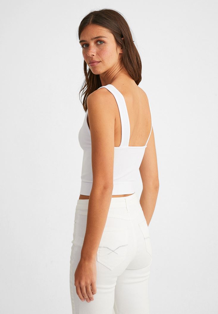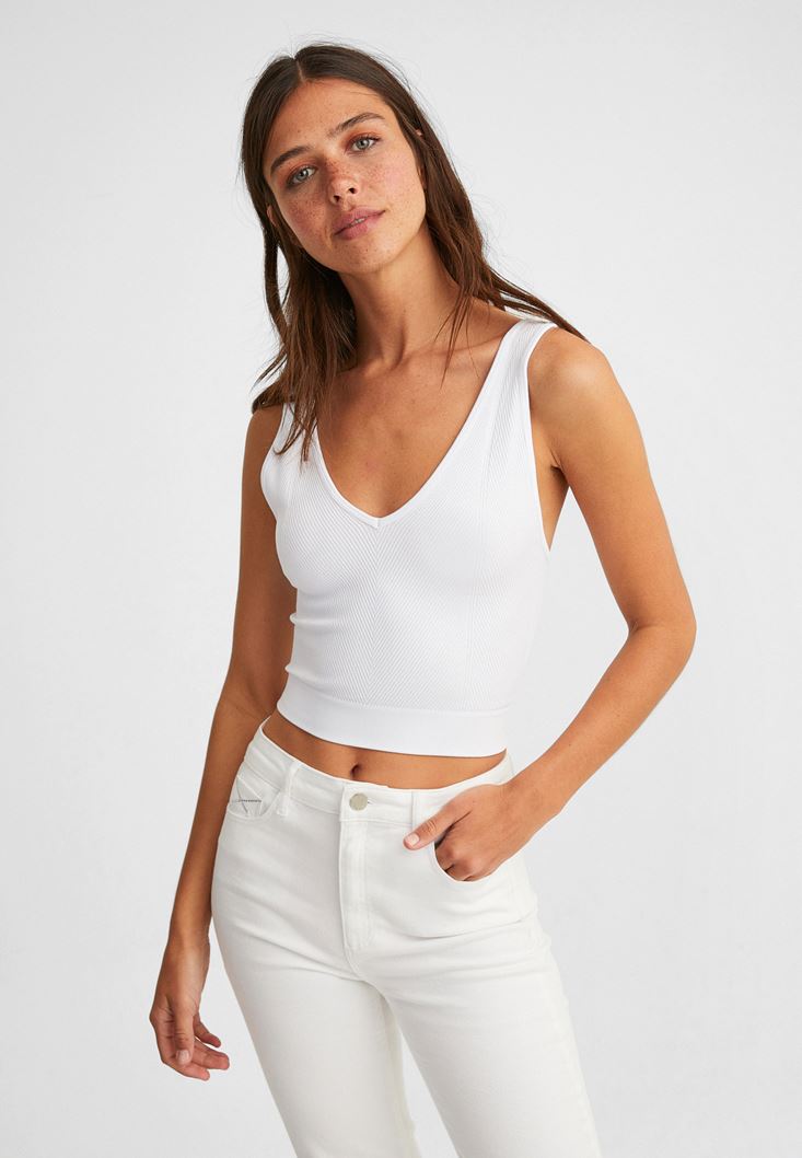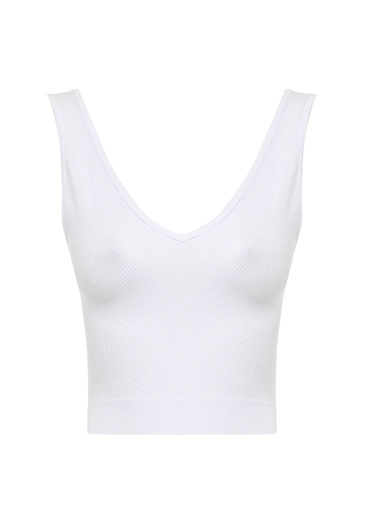 • Bayan Beyaz V Yaka Jakarlı Dikişsiz Atlet