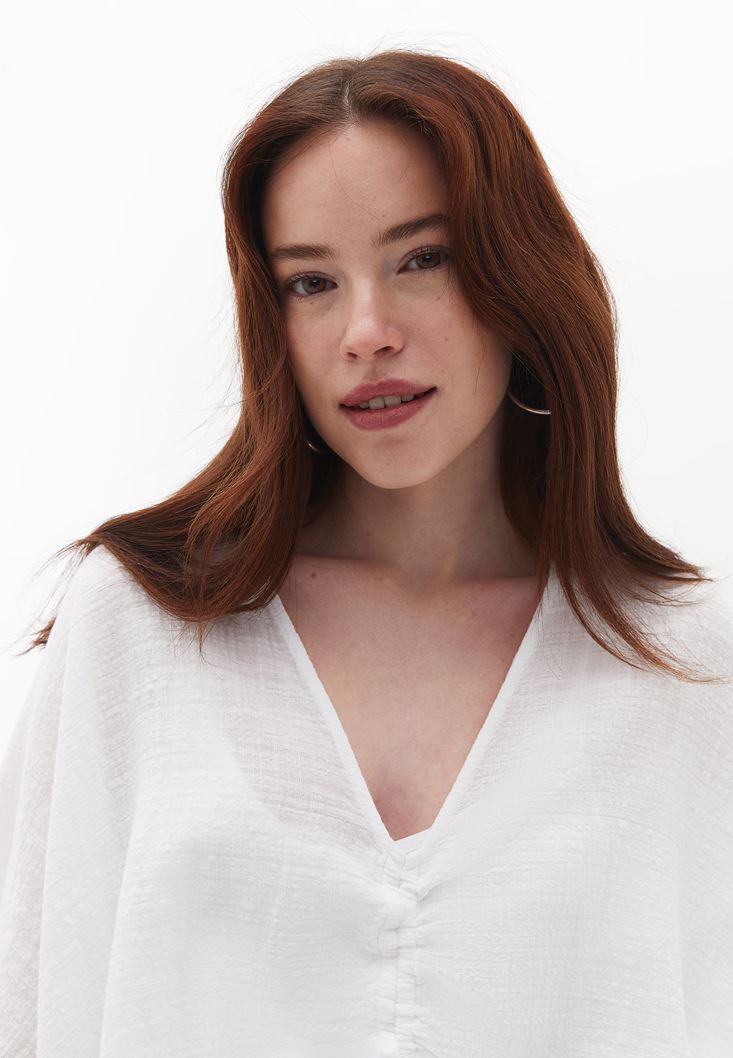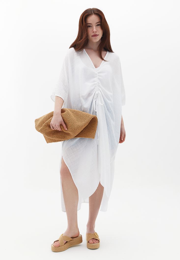 • Bayan Beyaz V Yaka Kaftan Elbise