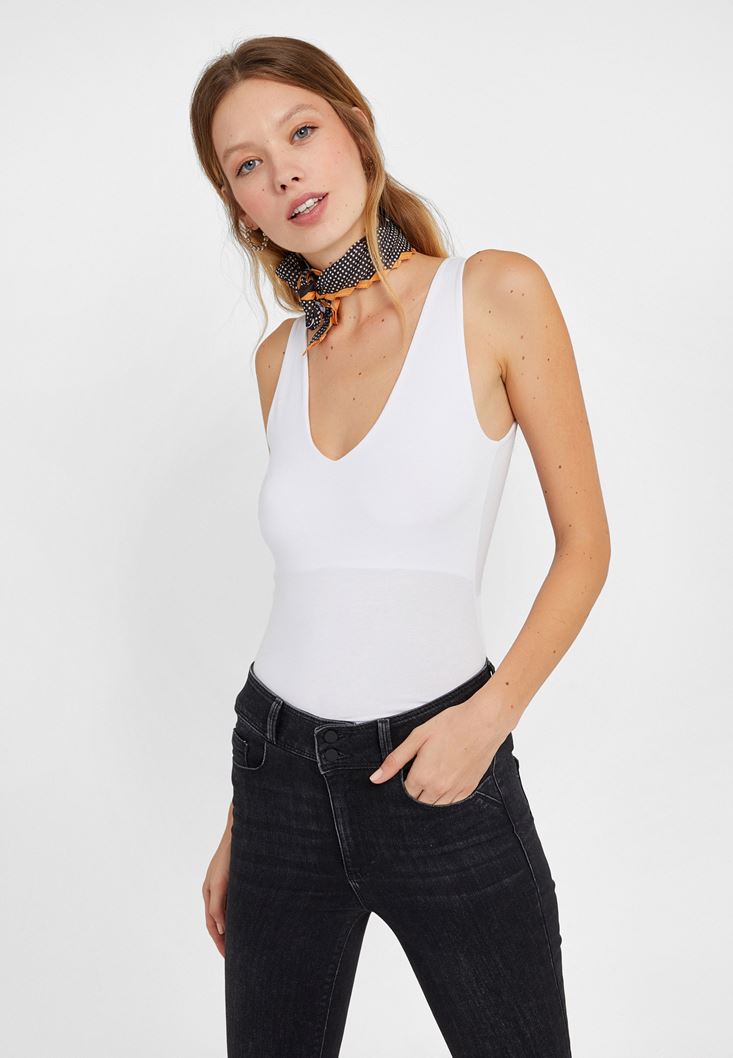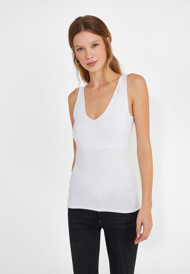 Beyaz V Yaka Kalın Askılı Atlet