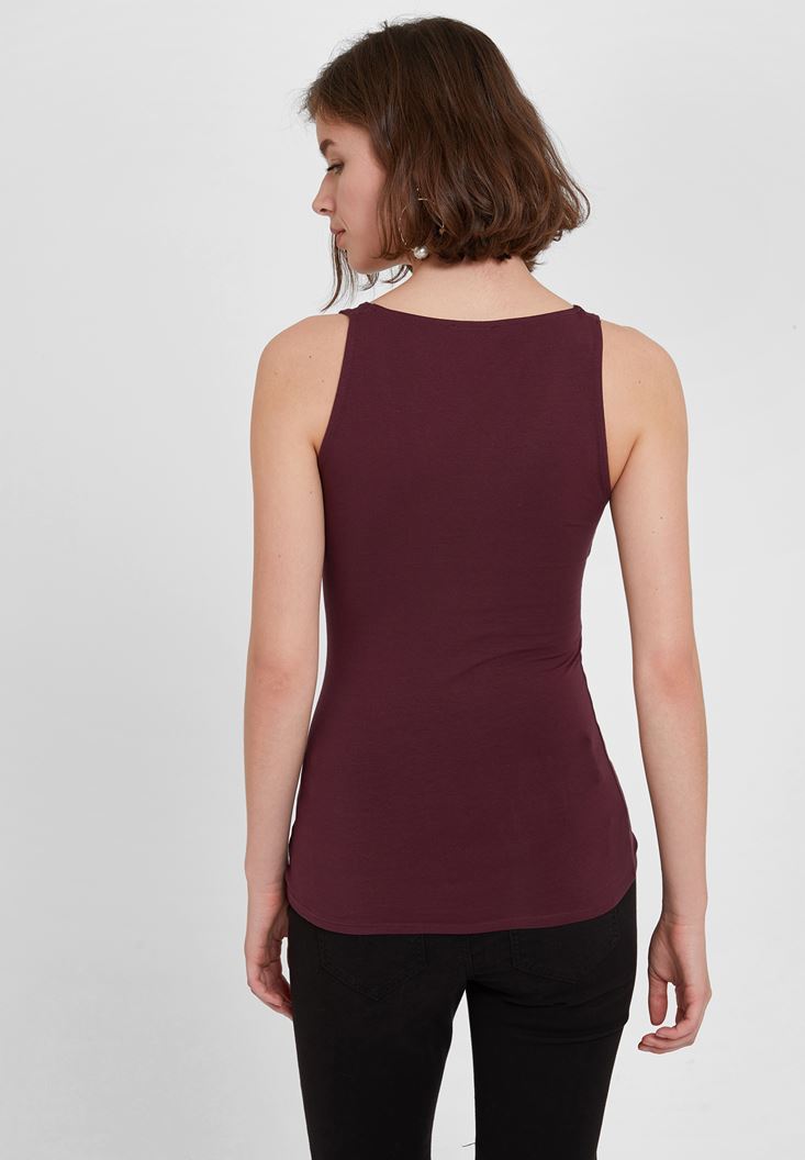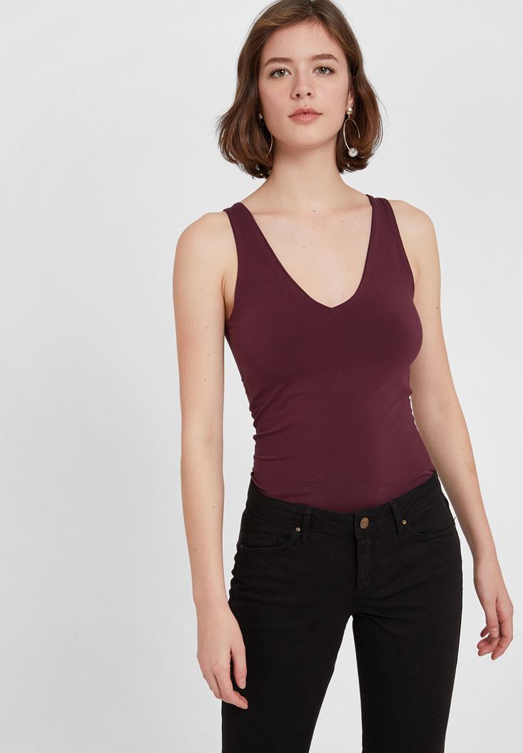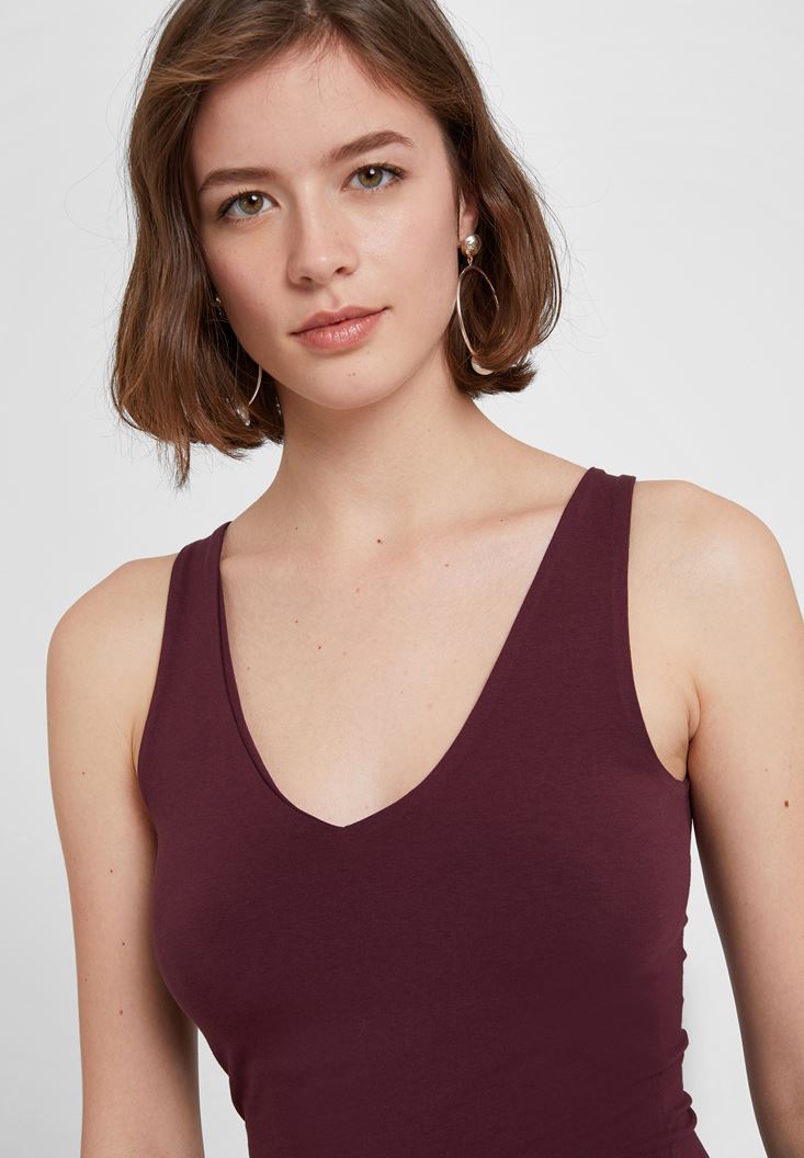 • Bayan Bordo V Yaka Kalın Askılı Pamuk Atlet