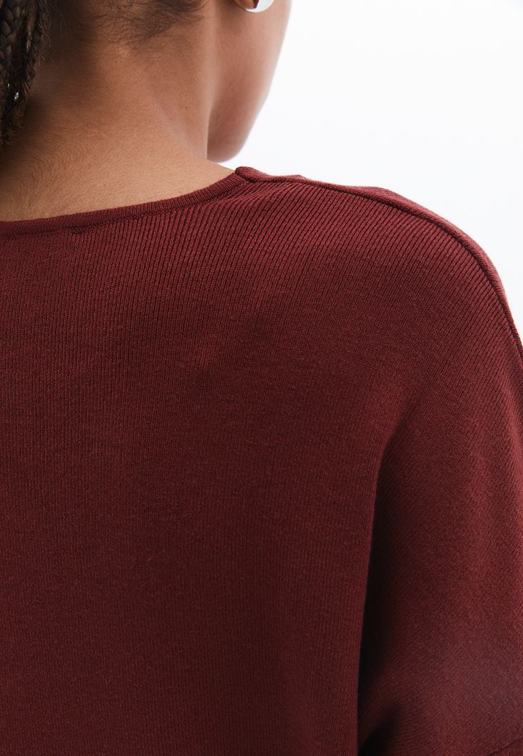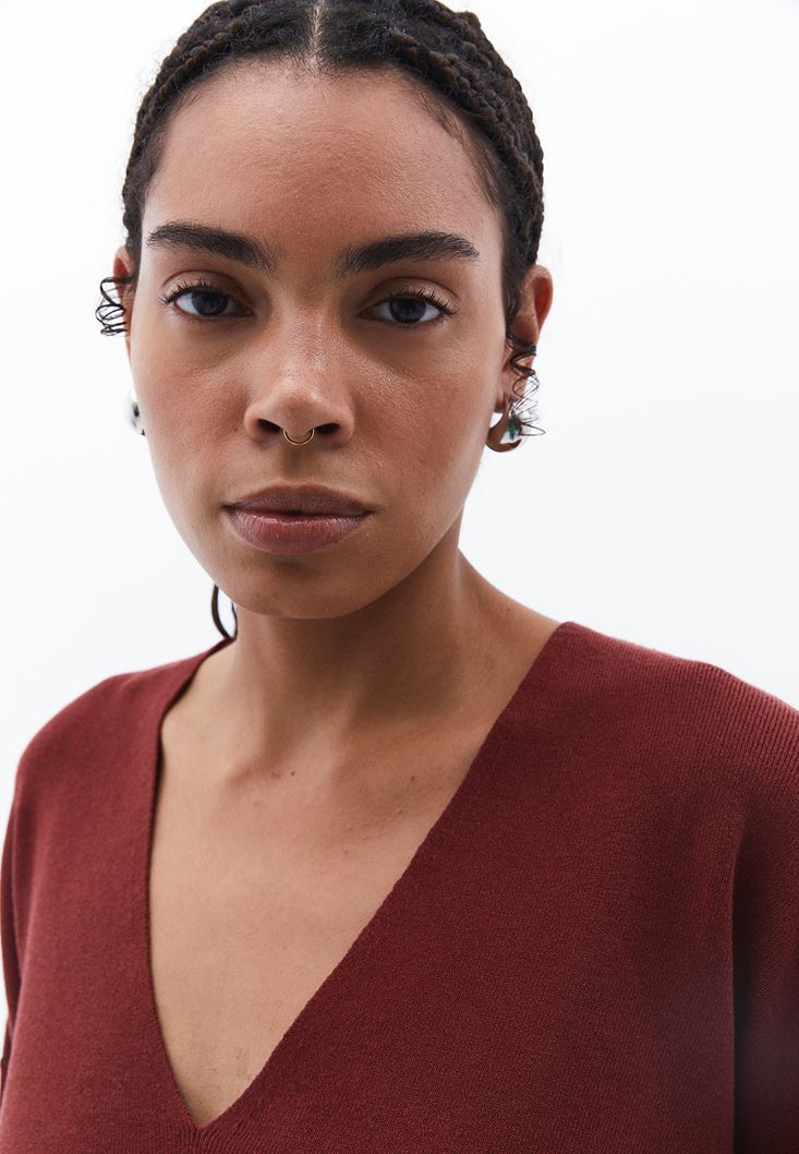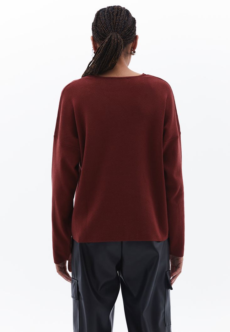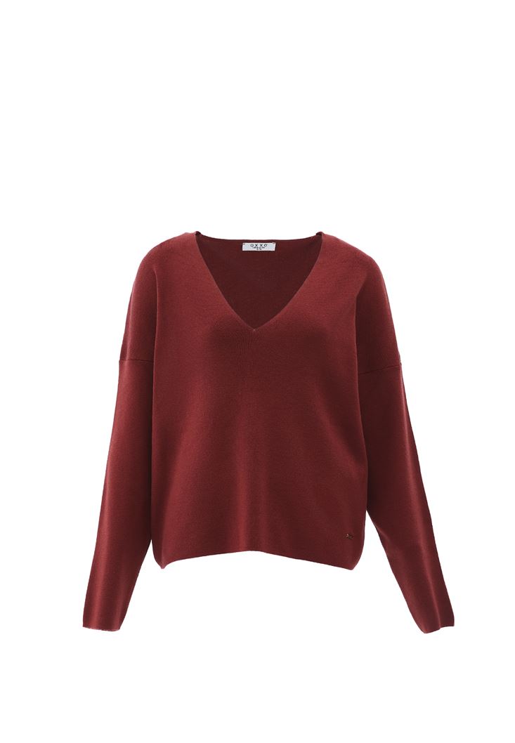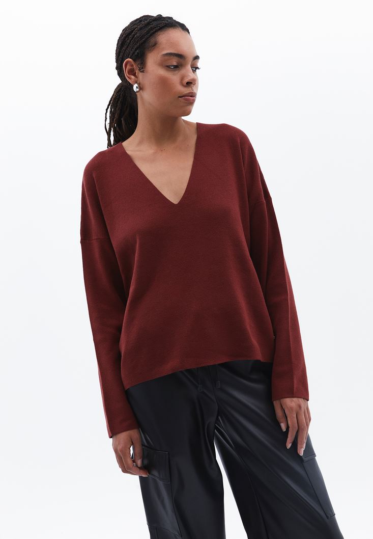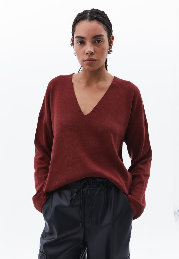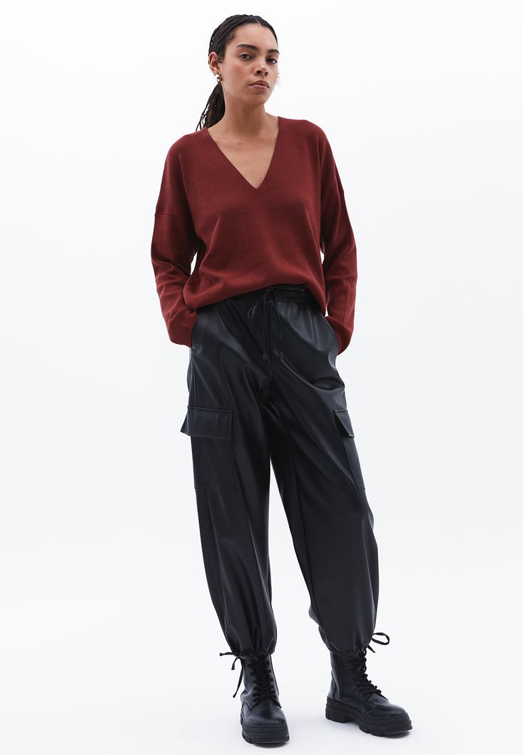 V Yaka Kazak ve Vegan Deri Pantolon Kombini