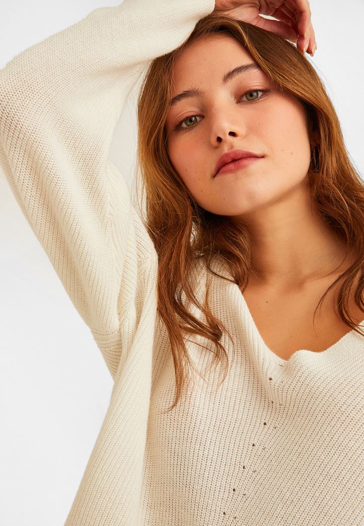 V Yaka Kazak modeli, pamuk içerikli dokusu ve örme yapısı ile yeni sezonda karşınıza çıkıyor. Kadın kazak modeli, V yaka duruşu sayesinde çekicilik sunmasının yanı sıra bol kalıbının rahatlığıyla da ön plana çıkıyor. V yaka kazak modeli, iş veya okul yaşantınızda kullanacağınız kombinleri vurgulamanız için hoş bir seçenek oluyor. Yüksek belli jean pantolonlarla veya midi eteklerle kolaylıkla bir araya getirebileceğiniz V yaka kazak modeline dolabınızda yer açabilirsiniz. Kürk ceketlerle veya kaşe kabanlarla oluşturacağınız kombinleri kadın kazak modeli ile yükselişe geçirebilirsiniz. Oxxo'nun sıcacık dokularla ve harika detaylarla sizlere sunduğu kadın kazak modelleri ile siz de tarzınızı vurgulayabilirsiniz.