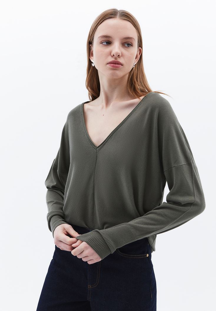 Fit: Loose / Yaka: V-Neck / Kol: Long Sleeve