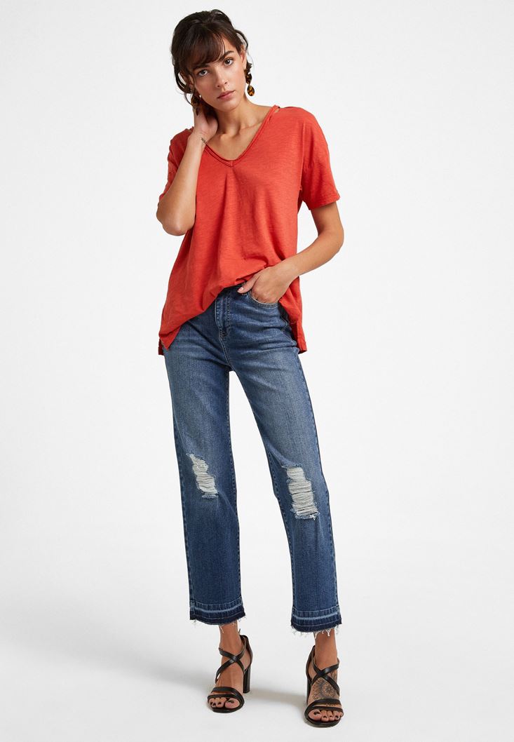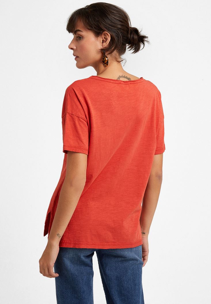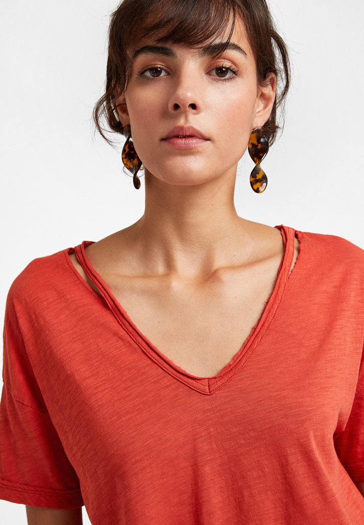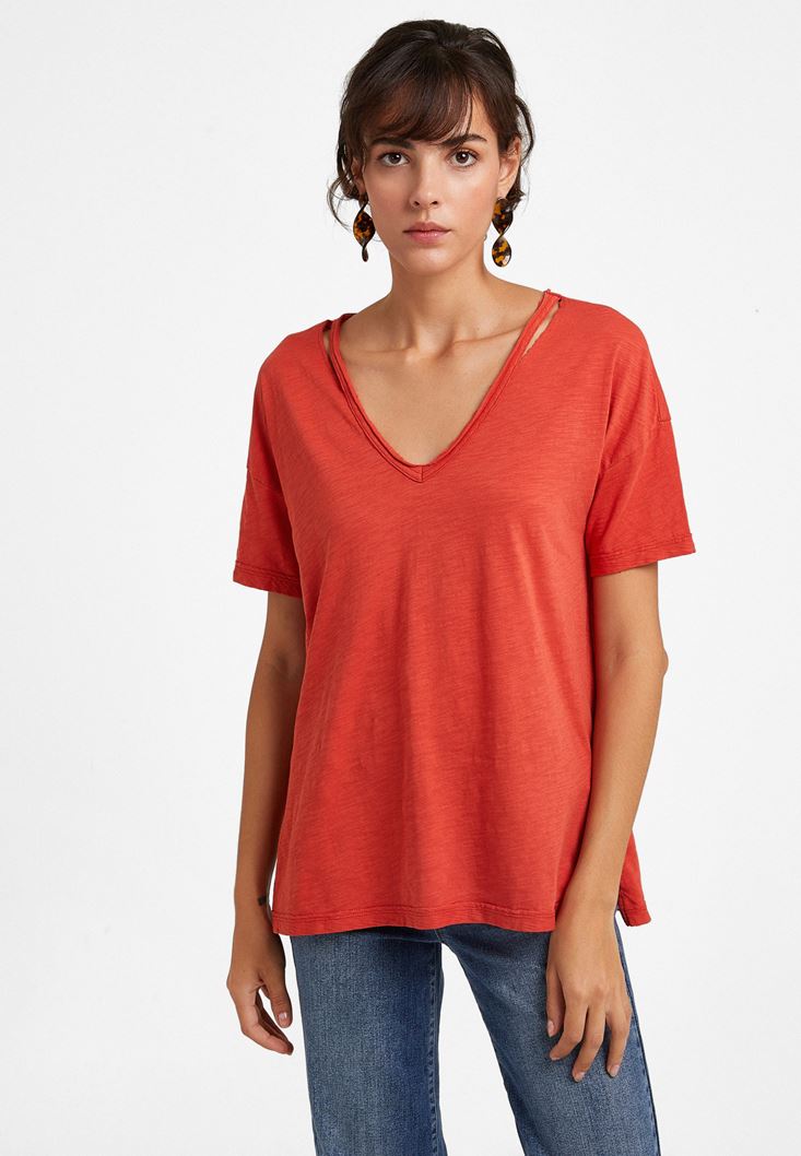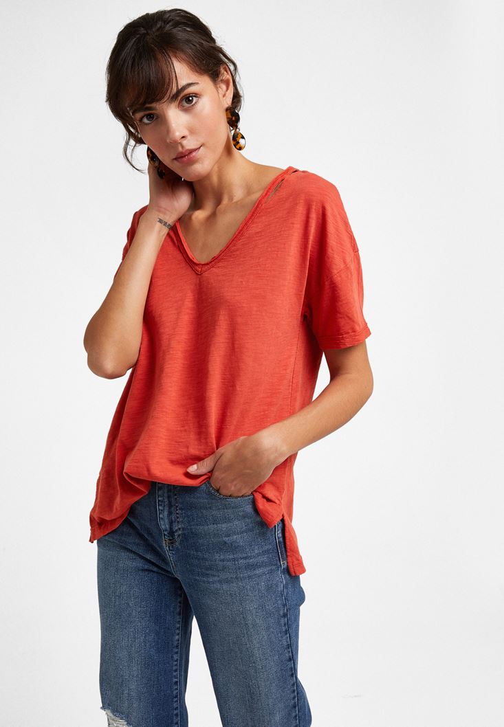 Oxxo V Yaka Kesik Detaylı Tişört 2097933506