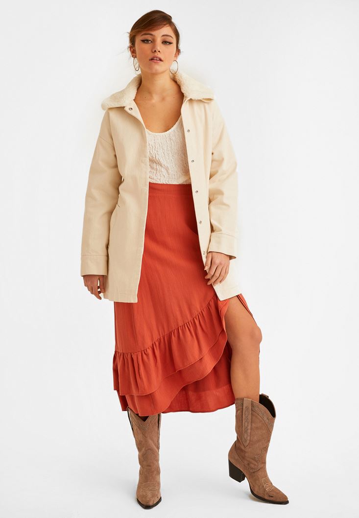 V Yaka Kısa Bluz modeli, viskon içerikli esnek dokusu ve uzun kollu görünümü ile Oxxo'da karşınıza çıkıyor. V yaka bluz modeli, büzgülü kumaş yapısı ve kısa kesimi ile yeni sezonda farklılık yaratmak için uygun bir seçenek oluyor. Önü ve arkası V kesimli olan kısa bluz modeli ile bulunacağınız her ortama uyumlu olabilecek kombinler yapabilirsiniz. Yüksek belli pantolonlarla veya desenli eteklerle kombin oluşturabileceğiniz V yaka bluz modelini dolabınıza dahil edebilirsiniz. Kısa bluz modeli ile elde edeceğiniz şıklığı şallarla veya kolyelerle taçlandırabilirsiniz. Oxxo'nun dikkat çeken dokularla ve renklerle sizlere sunduğu V yaka bluz modelleri ile tarzınıza çekicilik katabilirsiniz.
