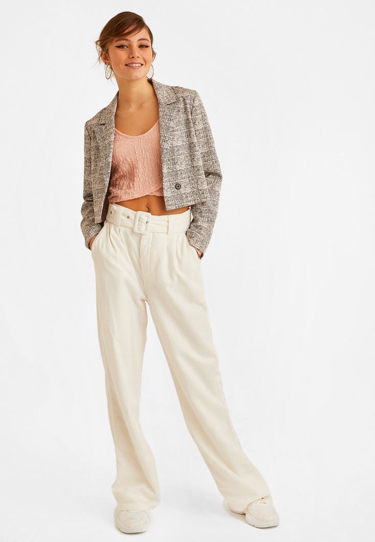 V Yaka Kısa Bluz modeli, viskon içerikli esnek dokusu ve uzun kollu görünümü ile Oxxo'da karşınıza çıkıyor. V yaka bluz modeli, büzgülü kumaş yapısı ve kısa kesimi ile yeni sezonda farklılık yaratmak için uygun bir seçenek oluyor. Önü ve arkası V kesimli olan kısa bluz modeli ile bulunacağınız her ortama uyumlu olabilecek kombinler yapabilirsiniz. Yüksek belli pantolonlarla veya desenli eteklerle kombin oluşturabileceğiniz V yaka bluz modelini dolabınıza dahil edebilirsiniz. Kısa bluz modeli ile elde edeceğiniz şıklığı şallarla veya kolyelerle taçlandırabilirsiniz. Oxxo'nun dikkat çeken dokularla ve renklerle sizlere sunduğu V yaka bluz modelleri ile tarzınıza çekicilik katabilirsiniz.