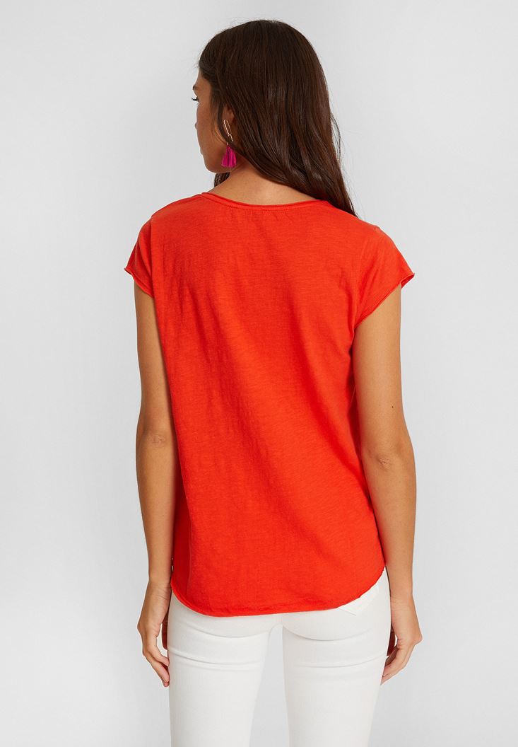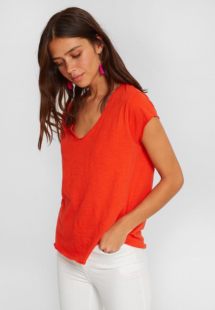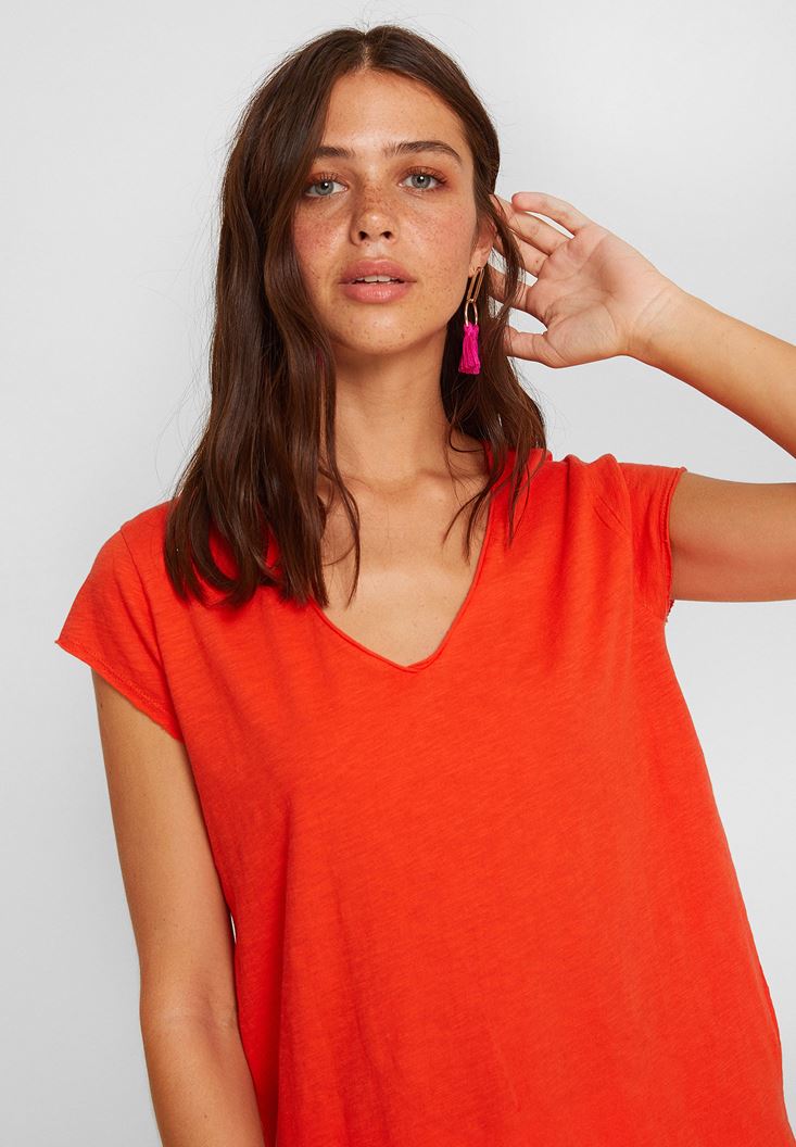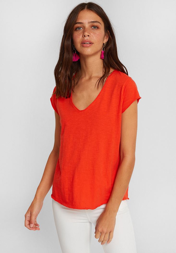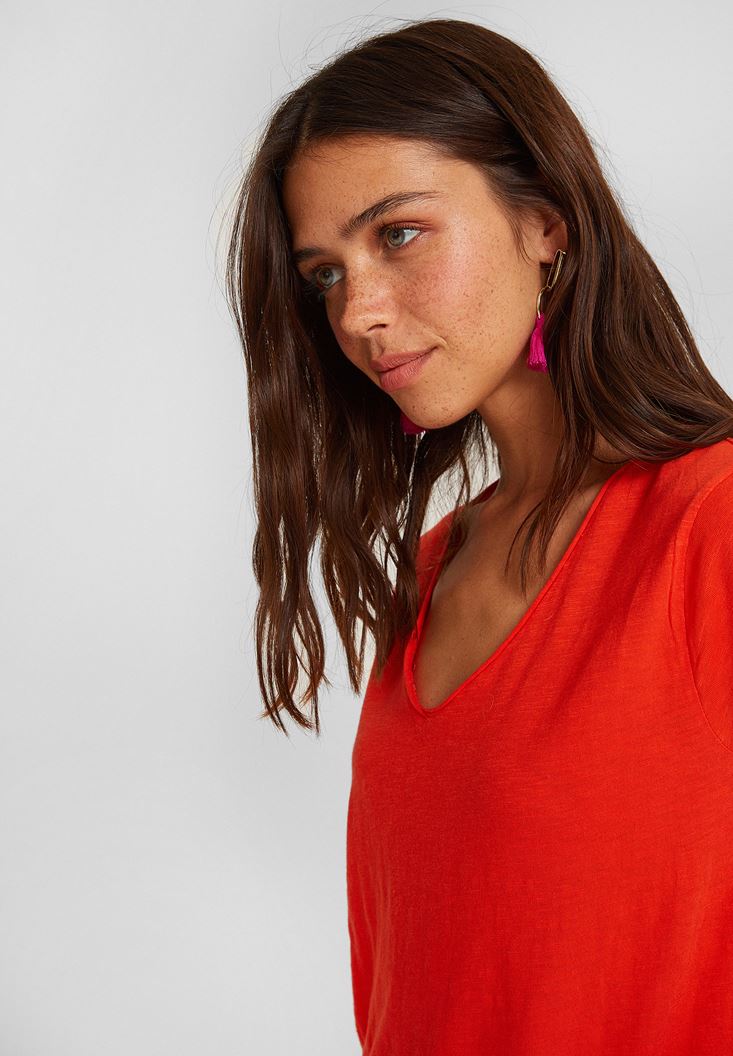 • Bayan Kırmızı V Yaka Kısa Kollu Pamuk Tişört