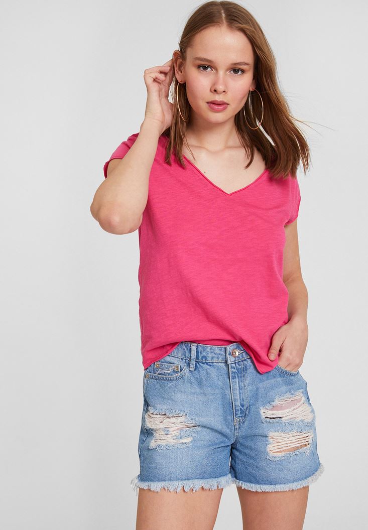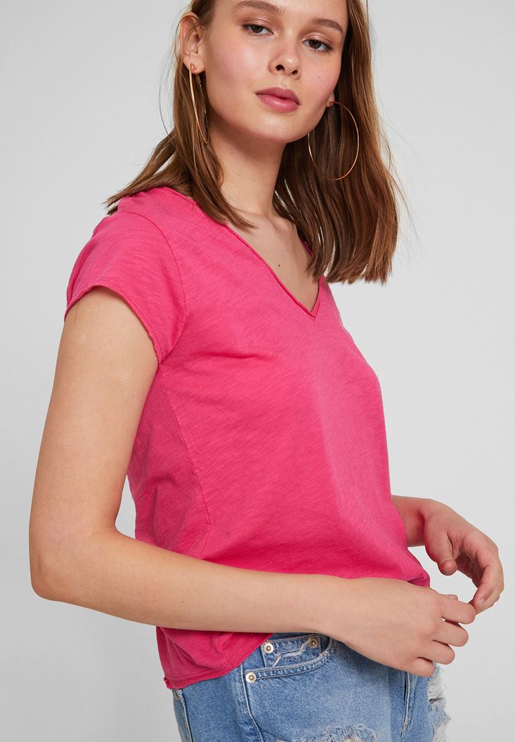 • Bayan Pembe V Yaka Kısa Kollu Pamuk Tişört