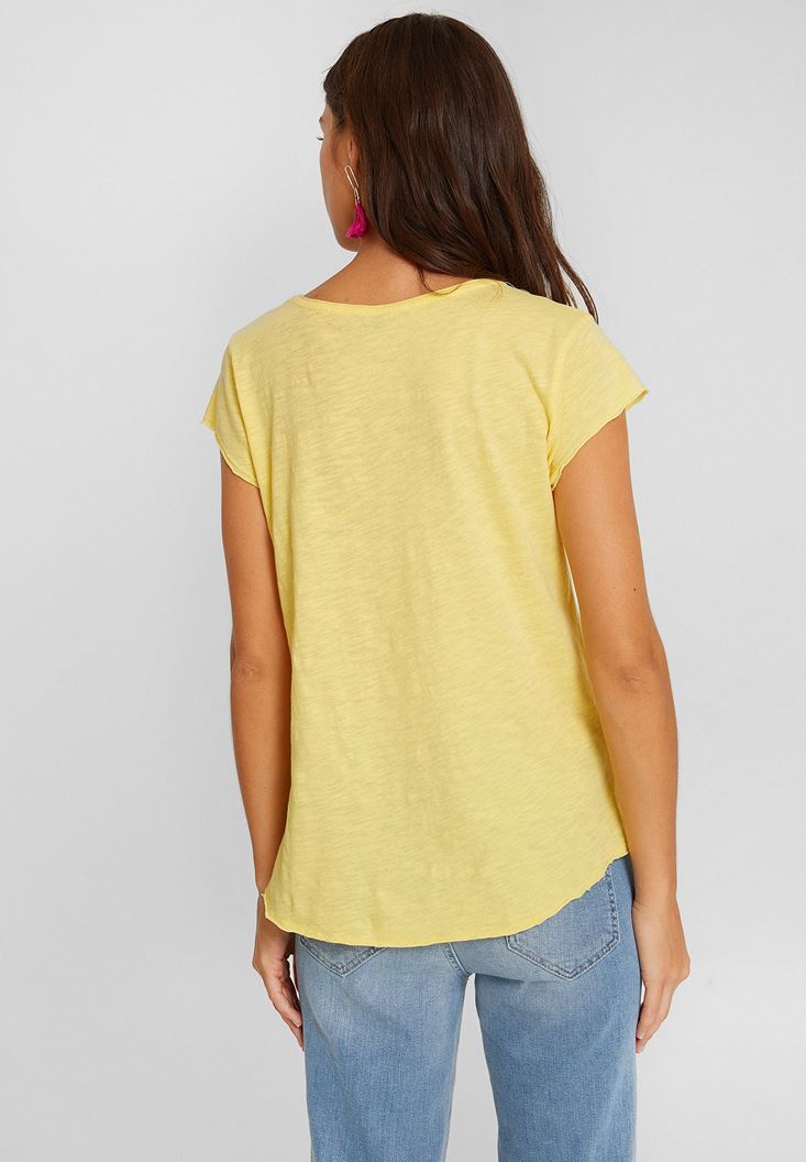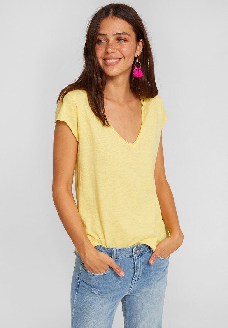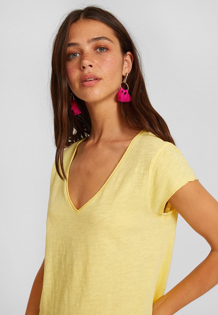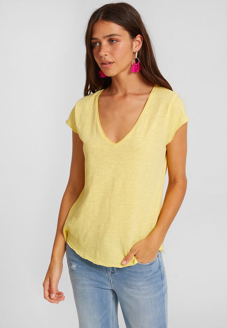 • Bayan Sarı V Yaka Kısa Kollu Pamuk Tişört