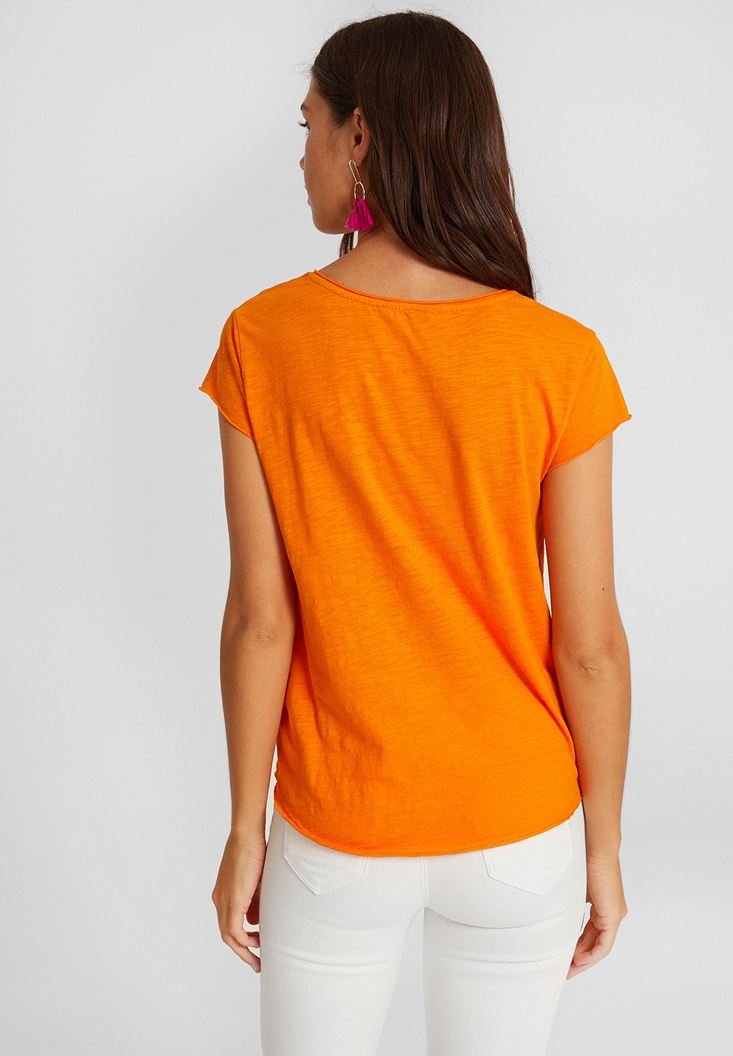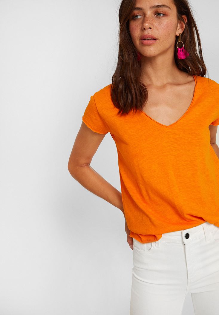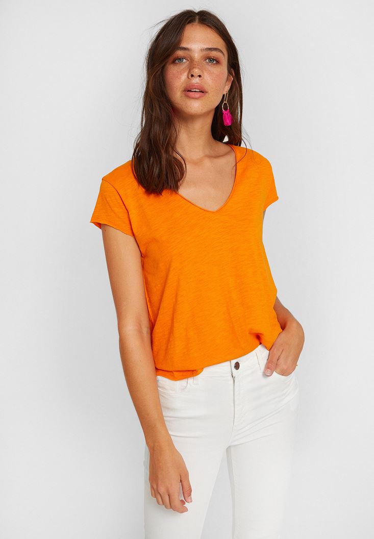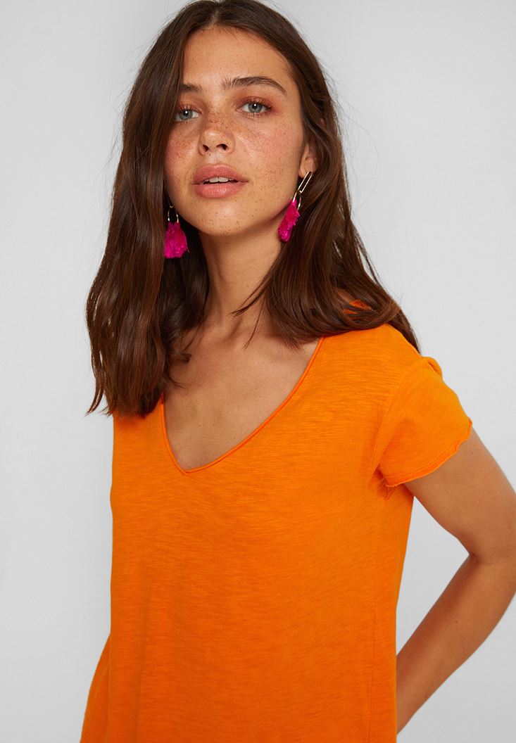 • Bayan Turuncu V Yaka Kısa Kollu Pamuk Tişört