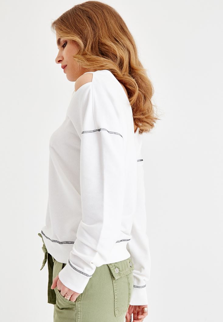 • Bayan Krem V Yaka Omuz Detaylı Sweatshirt