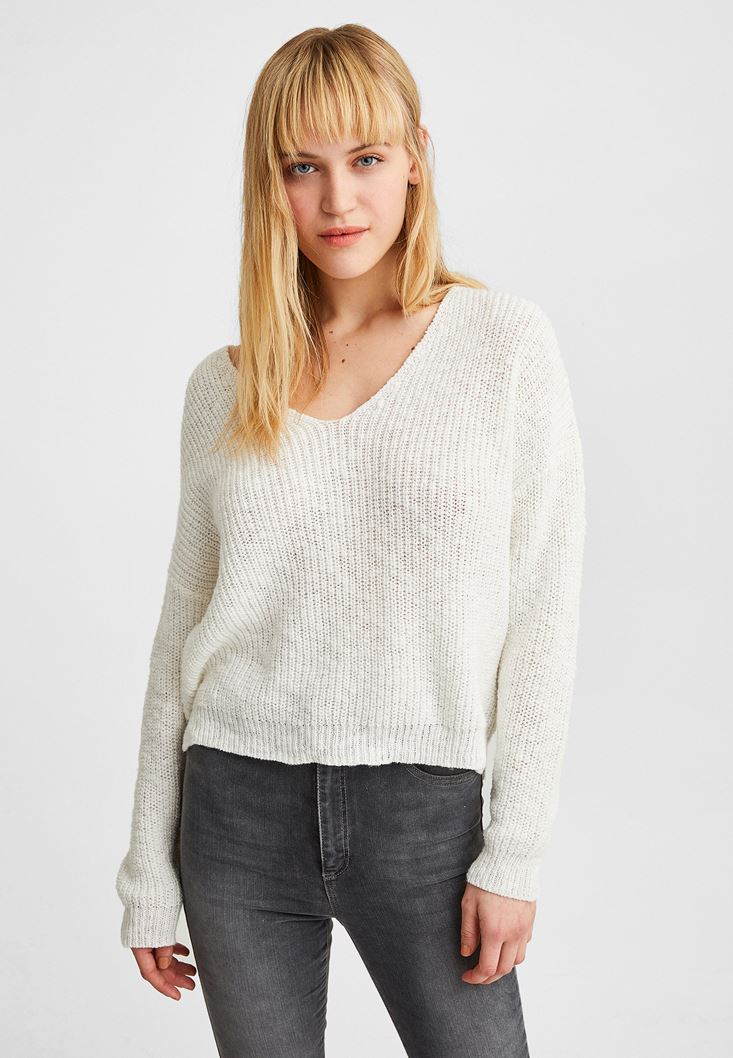 • Bayan Krem V Yaka Örgü Triko Kazak