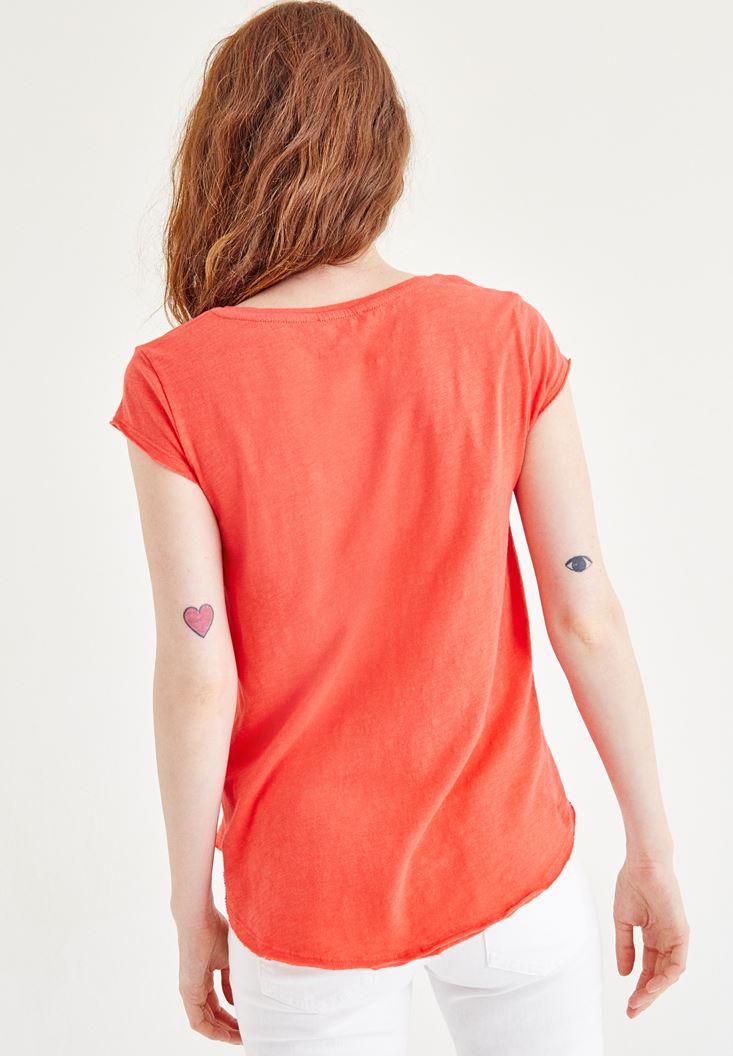 • Bayan Kırmızı V Yaka Pamuklu Tişört