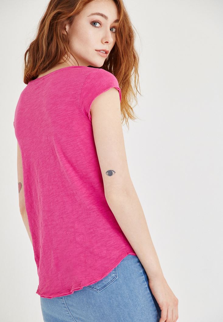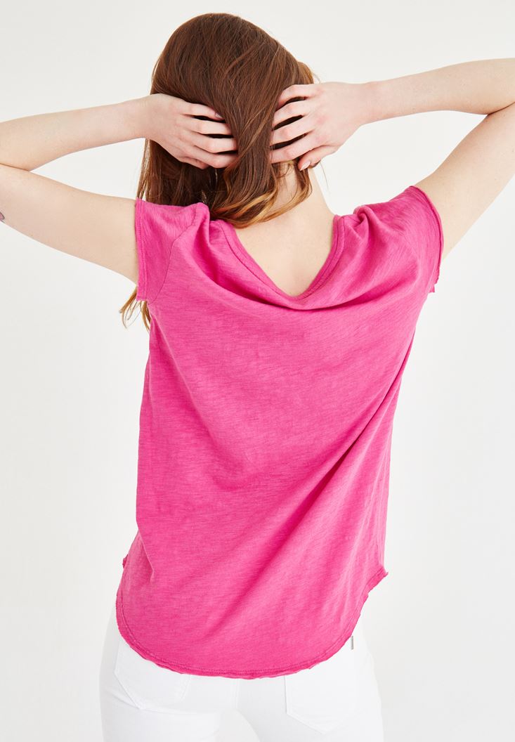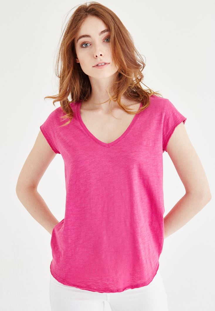 • Bayan Pembe V Yaka Pamuklu Tişört