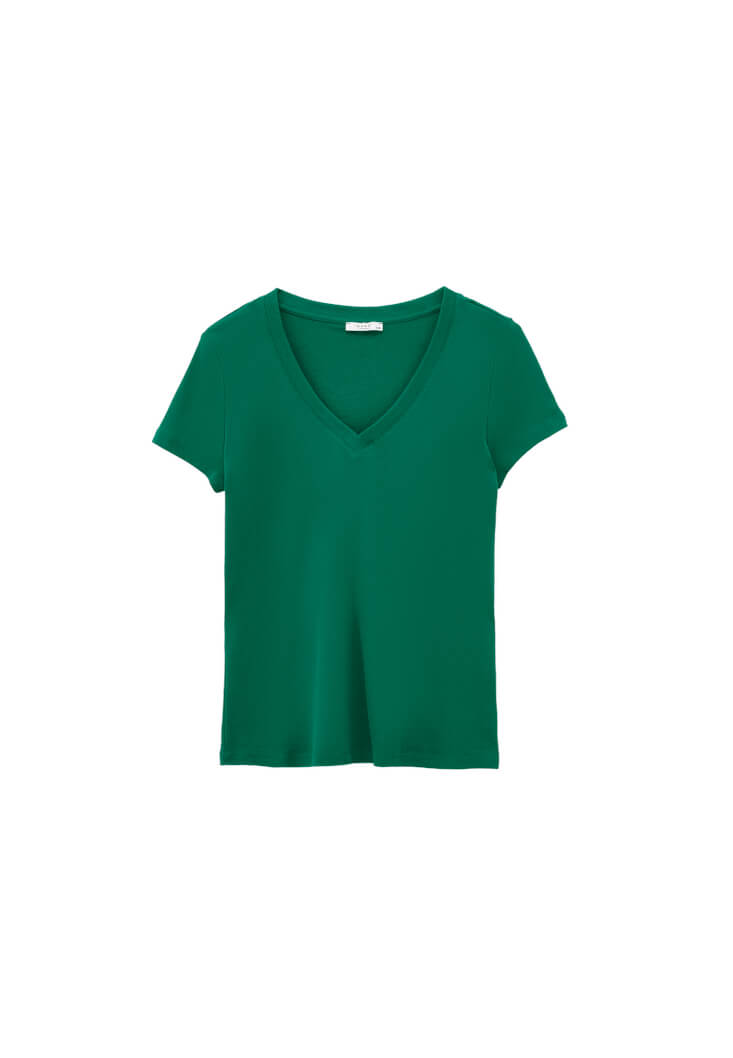 • Bayan Yeşil V Yaka Pamuklu Tişört