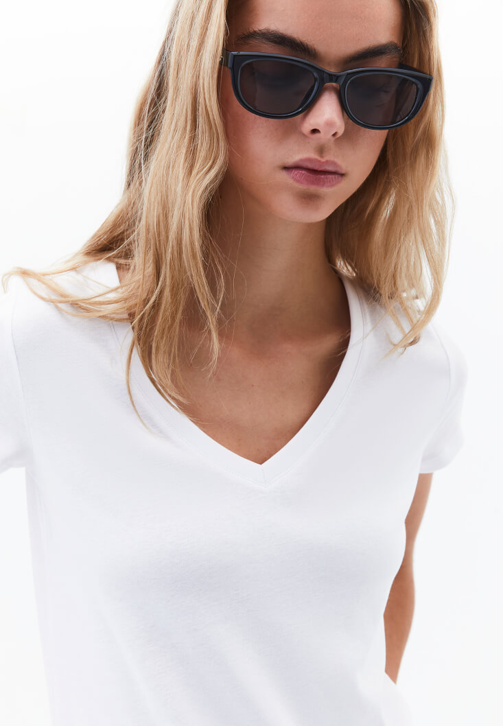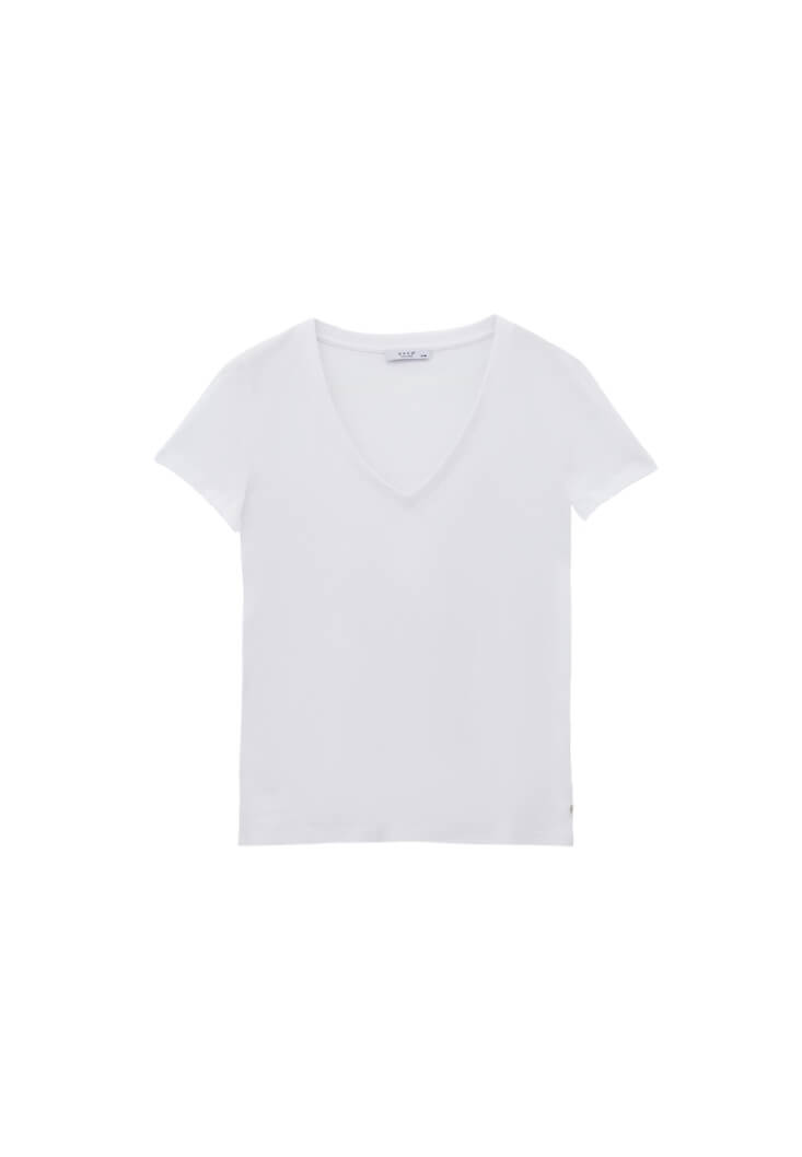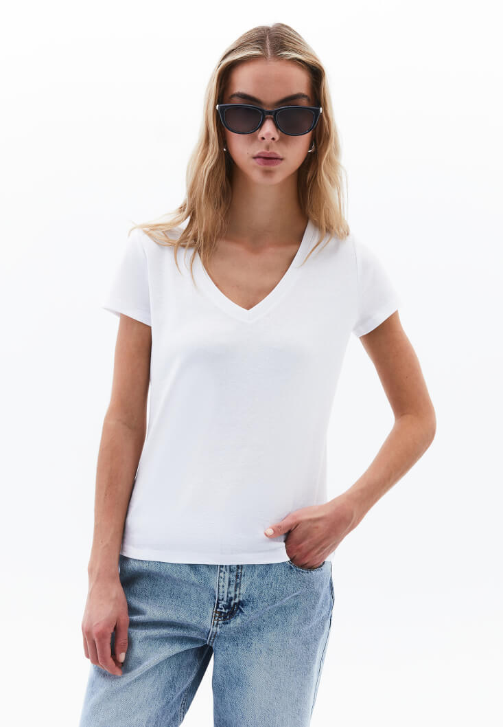 • Bayan Beyaz V Yaka Pamuklu Tişört