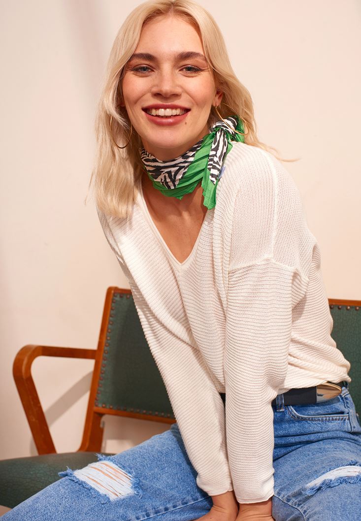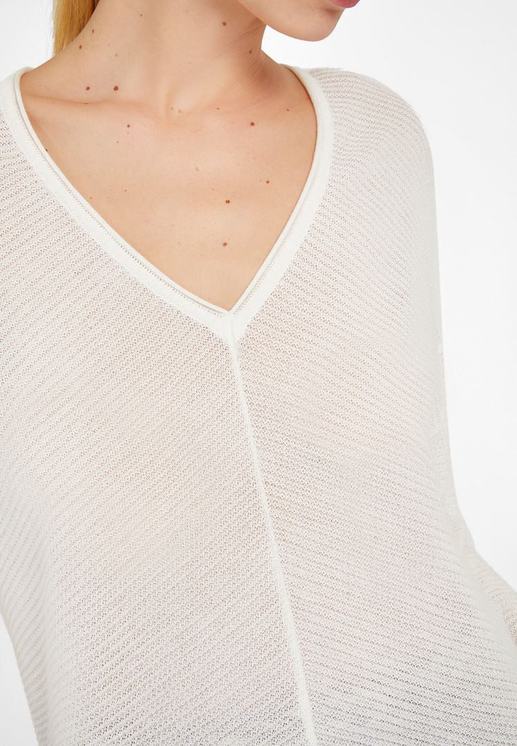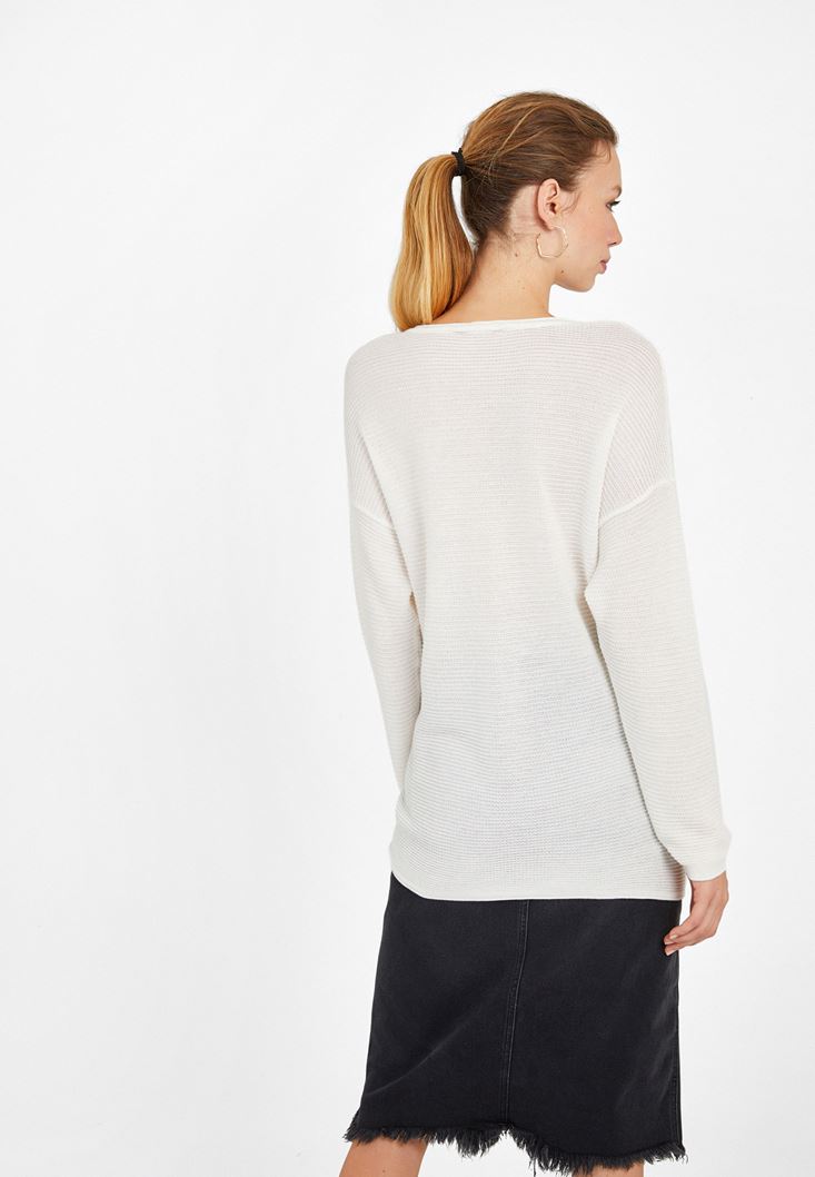 • Bayan Krem V Yaka Salaş Triko Kazak