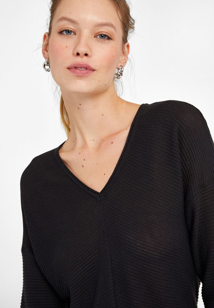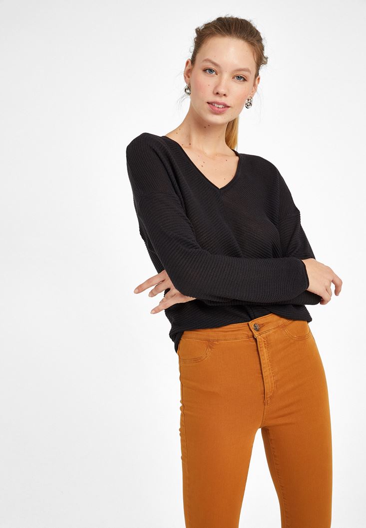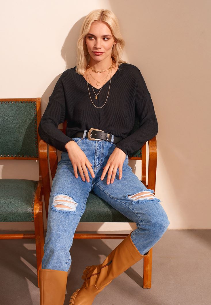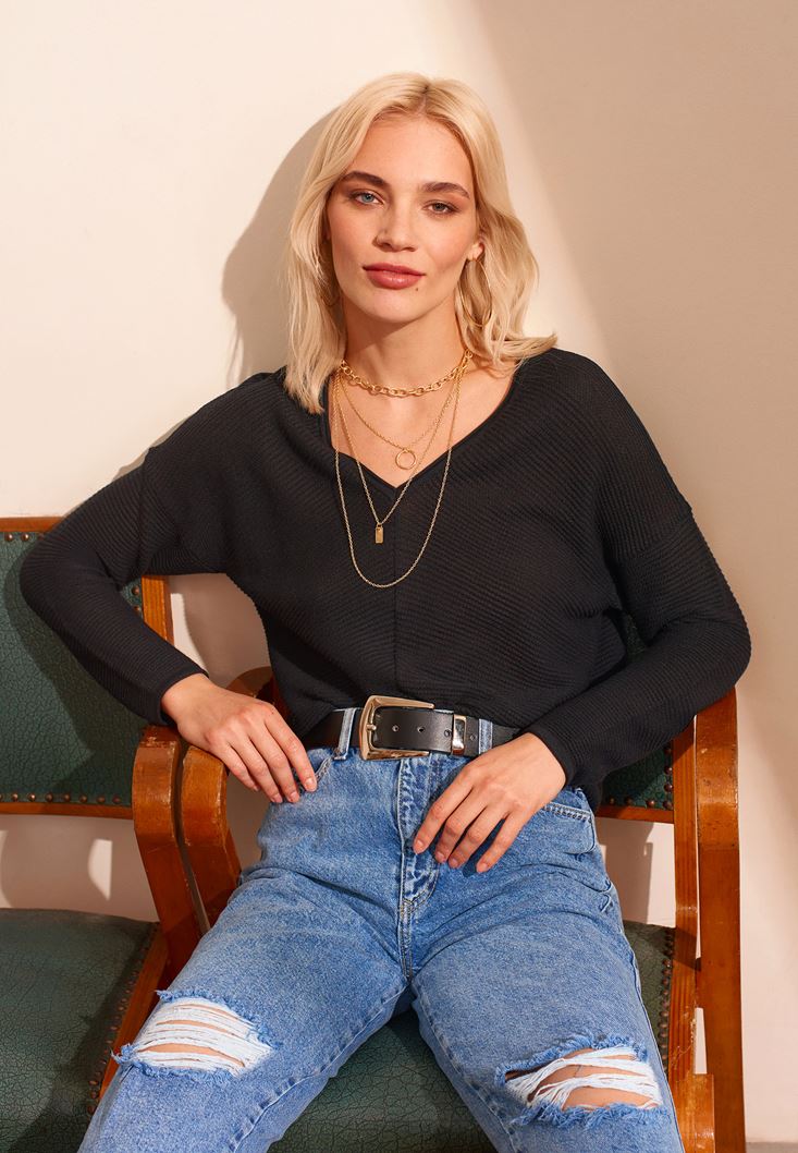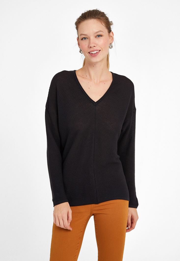 • Bayan Siyah V Yaka Salaş Triko Kazak