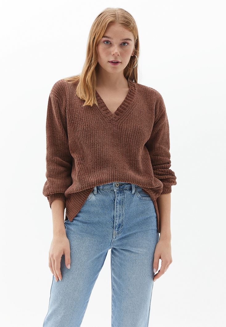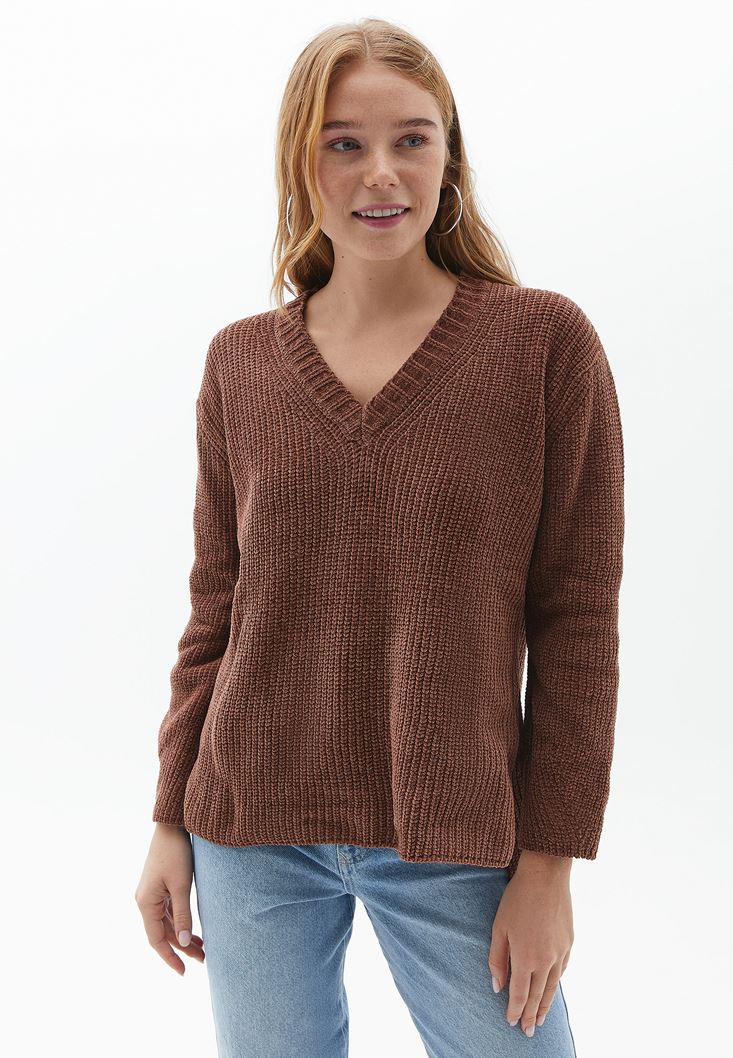 • Bayan Kahverengi V Yaka Şönil Kazak