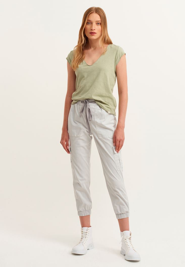 V Yaka Tişört ve Kargo Jogger Pantolon Kombini