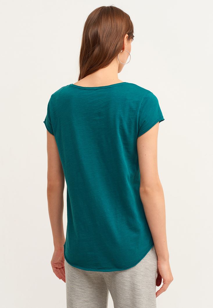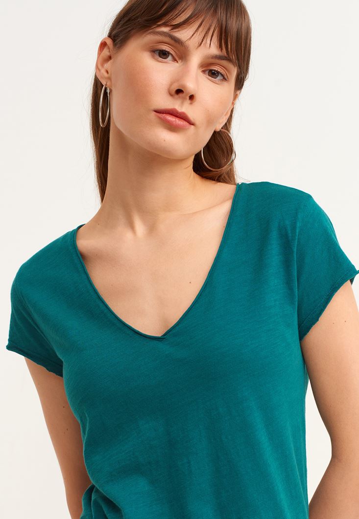 V Yaka Tişört ve Pamuklu Pantolon Kombini