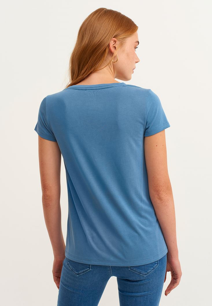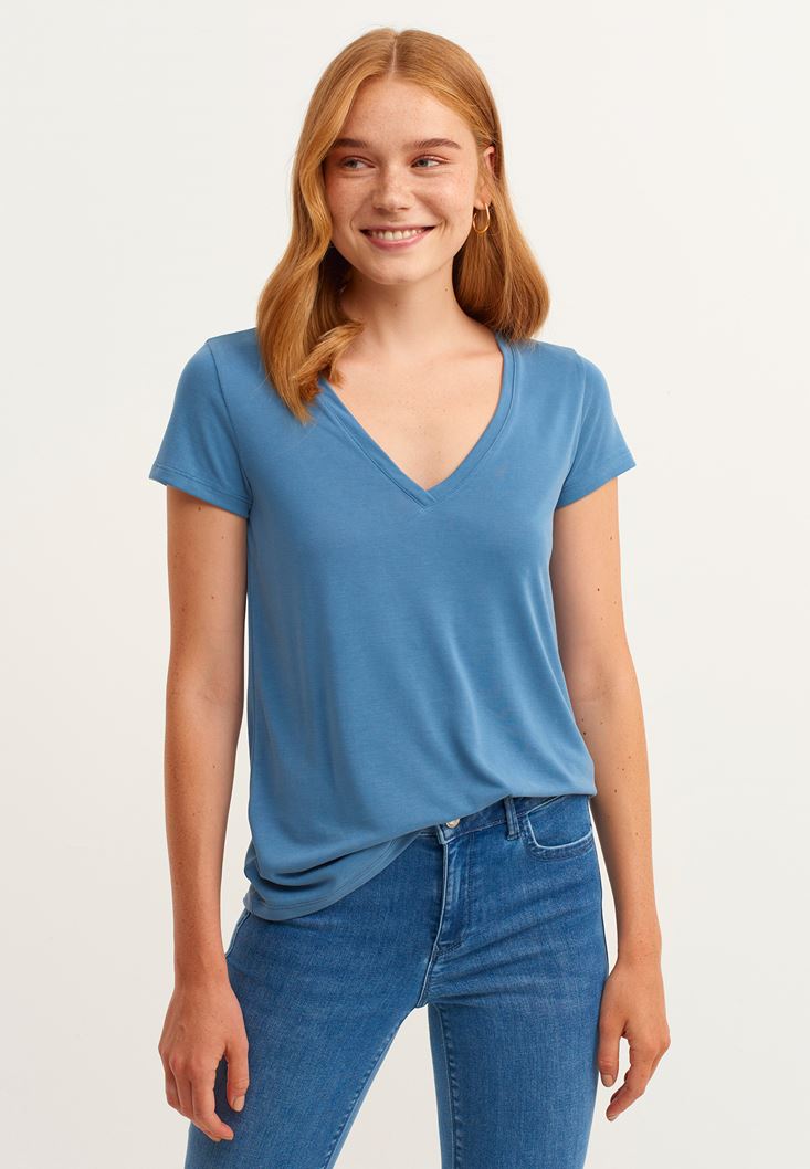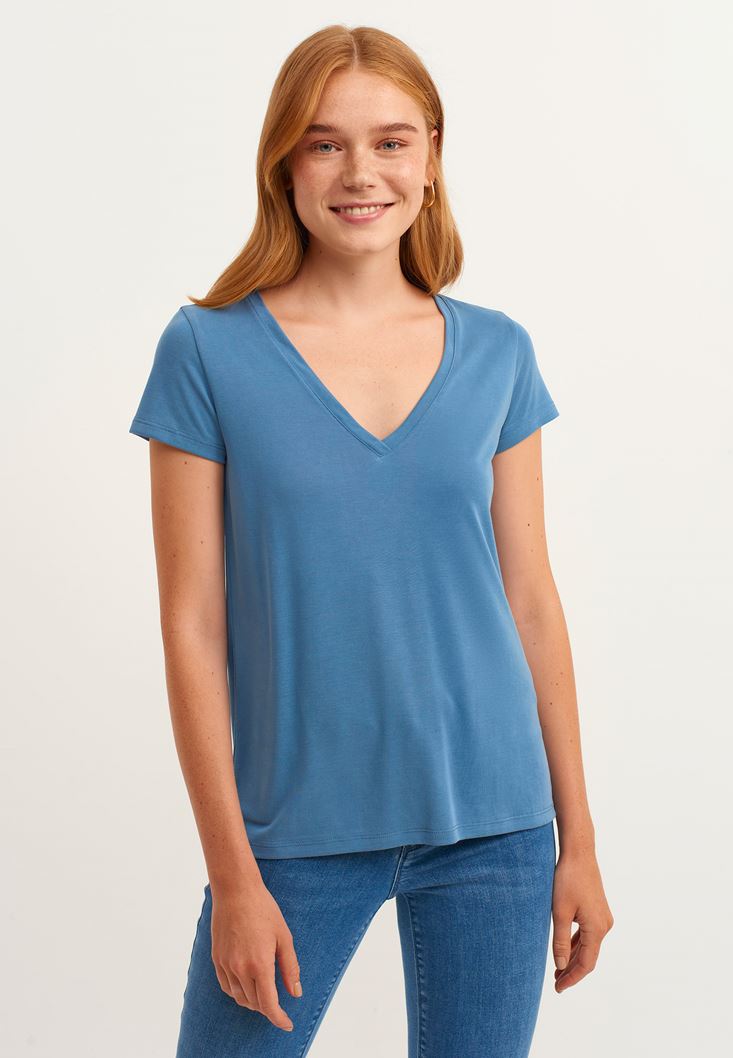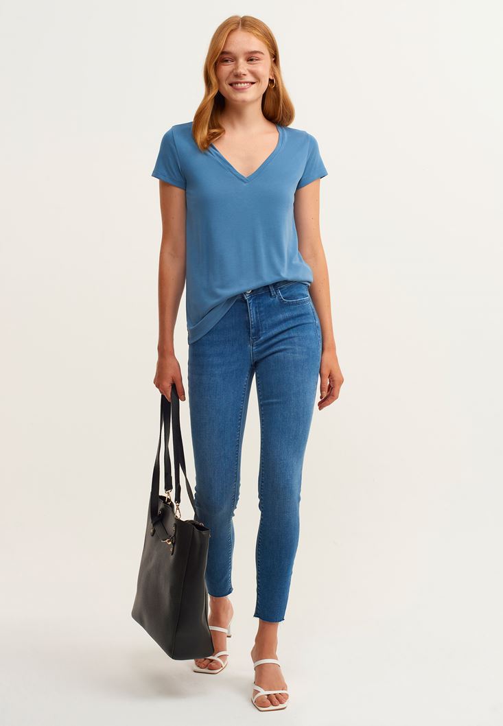 V Yaka Tişört ve Skinny Denim Pantolon Kombini