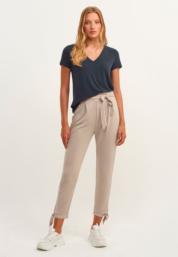 V Yaka Tişört ve Tuşeli Pantolon Kombini