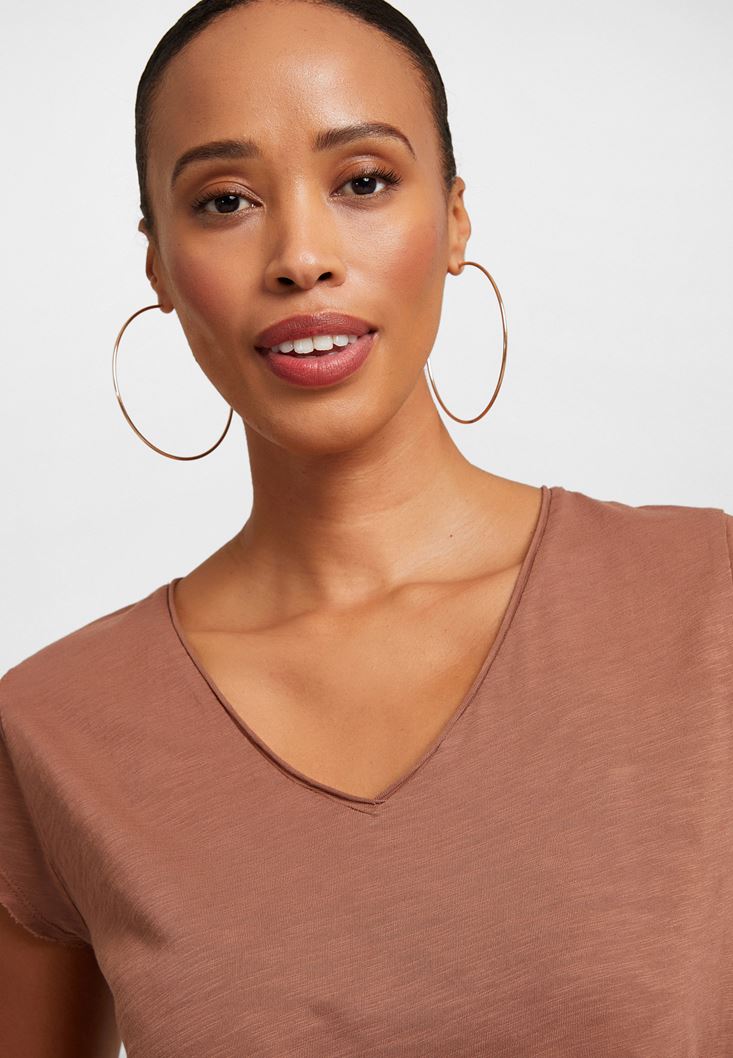 V Yaka Tişört modeli, nem transferi sağlayan pamuklu dokusu ile yeni sezonda sizlerle buluşuyor. kadın tişört modeli, V yaka kesiminin feminen duruşu ve geniş kalıbının rahatlığı ile Oxxo'da karşınıza çıkıyor. Hoş görünümü ile birçok kombin içerisinde kullanabilme imkanı elde edeceğiniz V yaka tişört modelini favorilerinize ekleyebilirsiniz. kadın tişört modeli ile hem şık hem de sportif kombinler yapabilirsiniz. V yaka tişört modelini, joggerlarla veya bol pantolonlarla kullanarak rahatlığa ulaşabilirsiniz. Kumaş veya jean pantolonlarla da tercih edebileceğiniz kadın tişört modelini dilediğiniz gibi tarzınıza uydurabilirsiniz. Oxxo'nun nefes alabilen dokularla ve mükemmel kalıplarla sizlere sunduğu V yaka tişört modelleri ile tarzınızı canlandırabilirsiniz