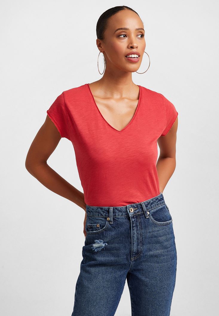 V Yaka Tişört modeli, nem transferi sağlayan pamuklu dokusu ile yeni sezonda sizlerle buluşuyor. kadın tişört modeli, V yaka kesiminin feminen duruşu ve geniş kalıbının rahatlığı ile Oxxo'da karşınıza çıkıyor. Hoş görünümü ile birçok kombin içerisinde kullanabilme imkanı elde edeceğiniz V yaka tişört modelini favorilerinize ekleyebilirsiniz. kadın tişört modeli ile hem şık hem de sportif kombinler yapabilirsiniz. V yaka tişört modelini, joggerlarla veya bol pantolonlarla kullanarak rahatlığa ulaşabilirsiniz. Kumaş veya jean pantolonlarla da tercih edebileceğiniz kadın tişört modelini dilediğiniz gibi tarzınıza uydurabilirsiniz. Oxxo'nun nefes alabilen dokularla ve mükemmel kalıplarla sizlere sunduğu V yaka tişört modelleri ile tarzınızı canlandırabilirsiniz