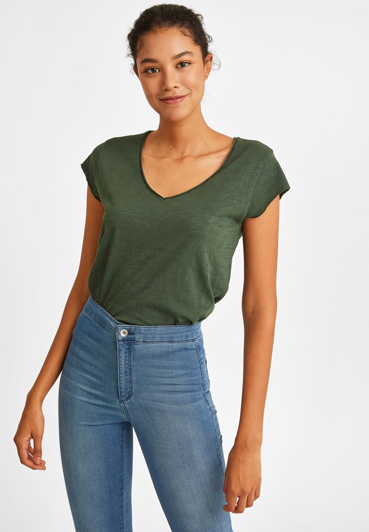 V Yaka Tişört modeli, nem transferi sağlayan pamuklu dokusu ile yeni sezonda sizlerle buluşuyor. kadın tişört modeli, V yaka kesiminin feminen duruşu ve geniş kalıbının rahatlığı ile Oxxo'da karşınıza çıkıyor. Hoş görünümü ile birçok kombin içerisinde kullanabilme imkanı elde edeceğiniz V yaka tişört modelini favorilerinize ekleyebilirsiniz. kadın tişört modeli ile hem şık hem de sportif kombinler yapabilirsiniz. V yaka tişört modelini, joggerlarla veya bol pantolonlarla kullanarak rahatlığa ulaşabilirsiniz. Kumaş veya jean pantolonlarla da tercih edebileceğiniz kadın tişört modelini dilediğiniz gibi tarzınıza uydurabilirsiniz. Oxxo'nun nefes alabilen dokularla ve mükemmel kalıplarla sizlere sunduğu V yaka tişört modelleri ile tarzınızı canlandırabilirsiniz