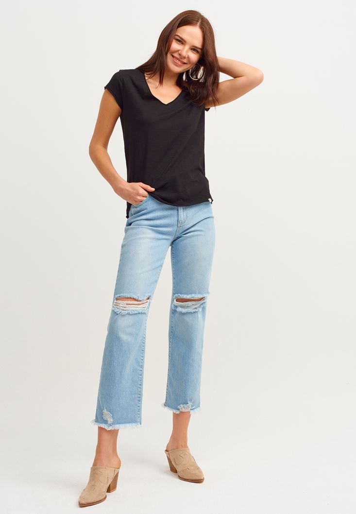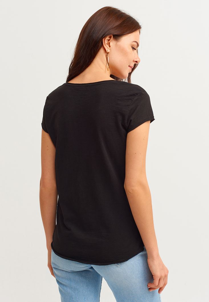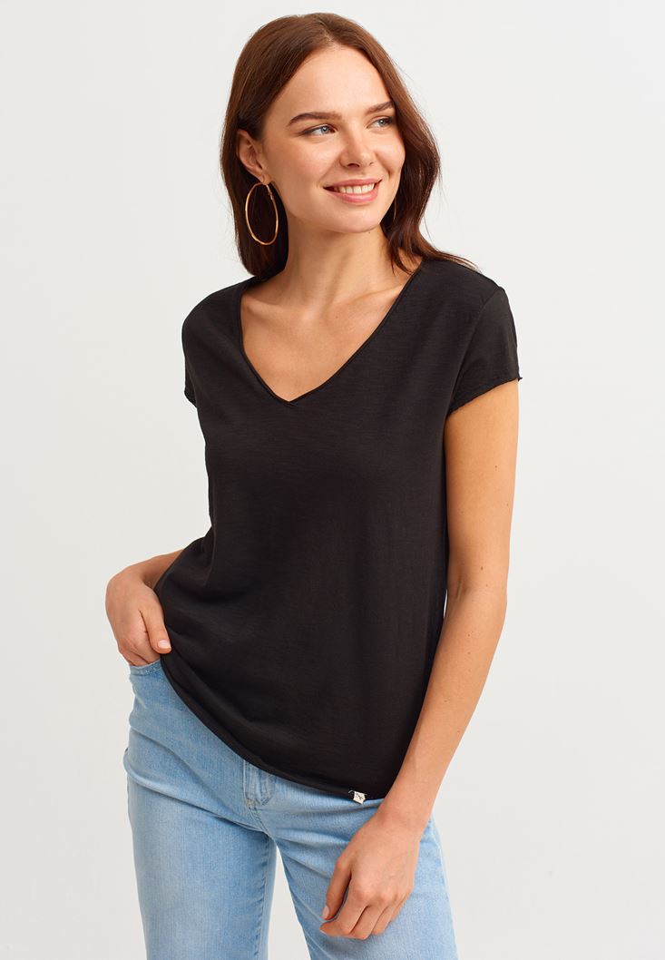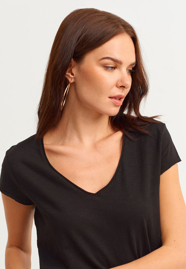 V Yaka Tişört modeli, pamuk içerikli dokusu ve bol kalıbı ile yeni sezonda karşınıza çıkıyor. Kadın tişört modeli, V yaka duruşu ve kısa kol kesimi eşliğinde dolabınızın favorilerine eklenmek için hazır görünüyor. Günlük kombinlerinizi oluştururken çabasız şıklığa ulaşacağınız V yaka tshirt modeli ile nefes alan dokunun da keyfini çıkarabilirsiniz. Kadın tişört modeli ile kış aylarında hırkaları veya gömlekleri bir araya getirerek sıcaklığa ulaşabilirsiniz. Yaz aylarında da V yaka tshirt modeli ile pamuklu dokunun etkisini hissetmek için şort veya etek tercih edebilirsiniz. Oxxo'nun hoş dokularla ve sadelikle sizlere sunduğu kadın tişört modelleri ile kombinlerinizi şekillendirebilirsiniz.