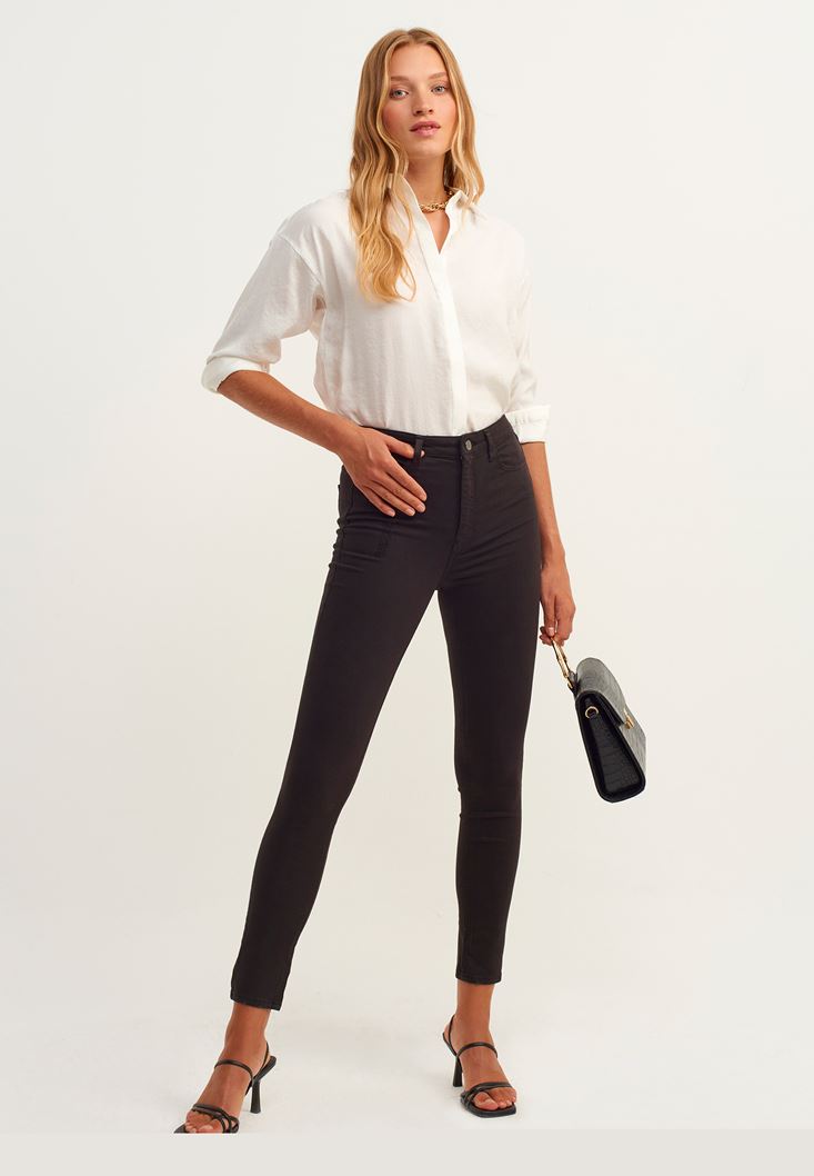 Kemer Detaylı Blazer Ceket ve Slim-Fit Denim Pantolon Kombini