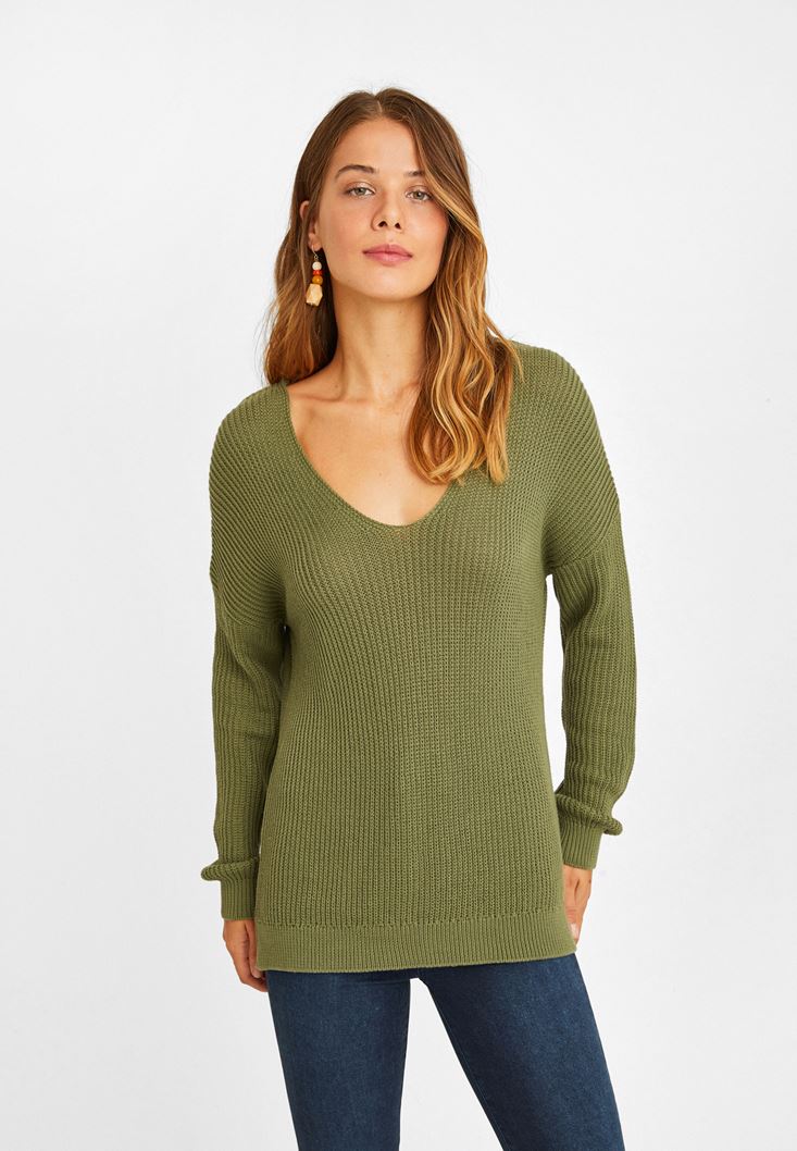 V Yaka Triko Kazak modeli bedeni sarmayan salaş duruşu ve dokunduğunuz anda size kendini sevdiren yumuşak örme yapısıyla beğeninize sunuluyor. Geniş V yaka kesimi ve fitilli örme dokusuyla sizi hafifçe saran Oxxo kadın triko modeli dolabınızın favorilerine eklenmeye hazır görünüyor. Keyifli bir kullanım sunan kadın triko kazak modeli ile skinny veya mom jean pantolonları gönül rahatlığıyla bir araya getirebilirsiniz. Yaka kısmını hareketlendirmek için renkli şal modelleri tercih ederek, kadın triko kazak modelini daha da ön plana çıkarabilirsiniz. Triko kazak modeli ile boncuklu küpe modelleri kullanarak, aksesuarların gücünden faydalanabilirsiniz. Oxxo’nun renkleriyle içinizi ısıtan ve kombinlerinize hareket katan kadın triko kazak modellerini mutlaka denemelisiniz.