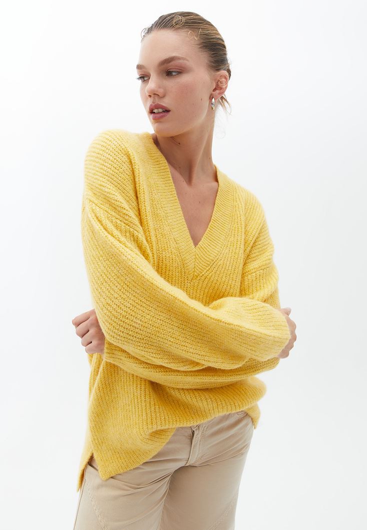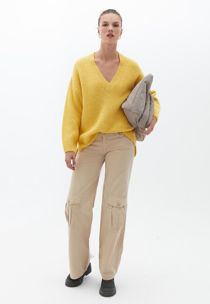 Fit: Loose / Yaka: V-Neck / Kol: Long Sleeve