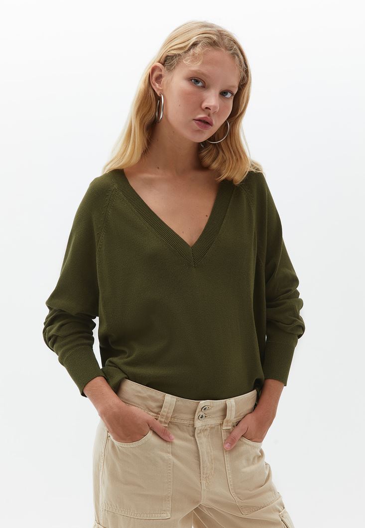 Fit: Loose / Yaka: V-Neck / Kol: Long Sleeve