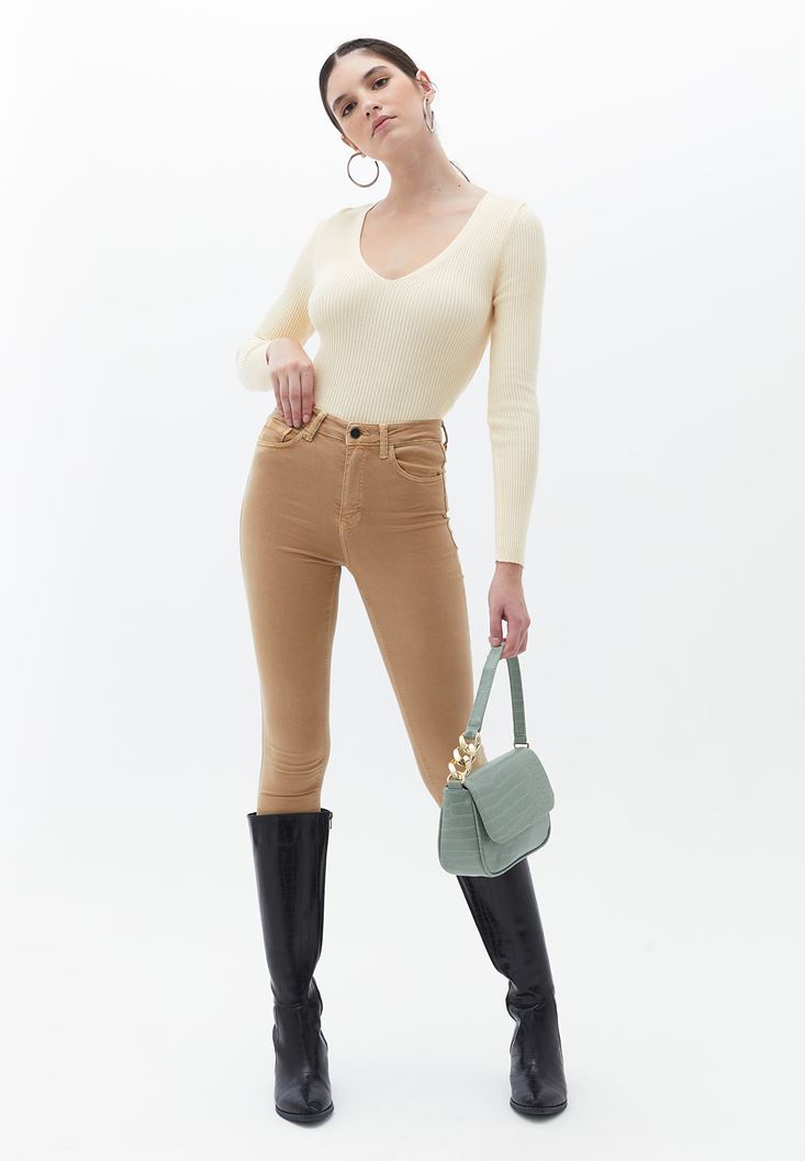 Fit: Bodycon / Yaka: V-Neck / Kol: Long Sleeve